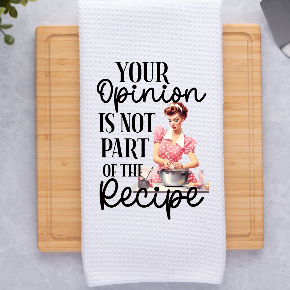 Your Opinion Is Not Part Of The Recipe Retro Housewife Sarcastic Kitchen Dish Towel
