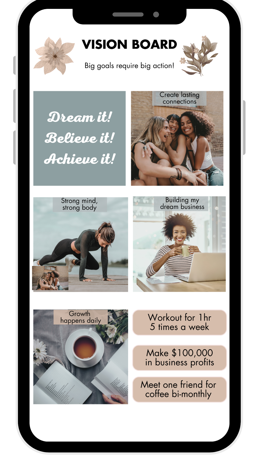 - Save the completed vision board as your phone wallpaper and let it inspire you every day!