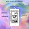 Along with these cards, you will receive two mini versions (in color + black & white) of the RWS Tarot cards WITHOUT the keywords (size: 0.7"x1.2"). Those can be printed on sticker sheet paper like this one: https://amzn.to/3U3ElGW (or just glued after cutting them out) and used as convenient little card "stickers" for your tarot journal if you have one.