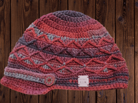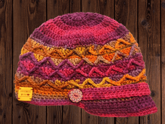 Este modelo es una pieza de arte en sí misma, tejida a mano para crear una mezcla de tonos única y hermosa que cambia conforme avanza la puntada, ¡como si fuera un diseño exclusivo para ti! Su visera moderna y el toque de los botones de madera pintados (estilo vintage) le dan ese aire juvenil, moderno y original que estabas buscando.