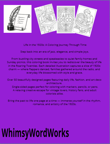 Let your heart waltz through the shimmer of the Roaring Twenties, where every page is a portal to elegance, rhythm, and romance. This enchanting collection of over 50 one-sided illustrations invites you to colour your way through a world of flapper charm, moonlit soirées, and golden Art Deco dreams.