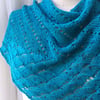 In the southern United States, gullywasher is a term for a sudden and intense, but usually brief, downpour of rain. This shawl begins at the right-hand tip and increases rather quickly with yarnovers at the beginning and end of every row, while a decrease in the center of every right-side row forces the garter stitch portion to slant. Sporadic eyelet rows in the garter stitch mimic raindrops falling and pooling into a lacy wave pattern in the lower portion of the shawl. Once the full width is reached, the waves start to decrease again, while the garter stitch continues to grow. When only two stitches remain of the lace portion, all stitches are bound off along the lower left edge of the shawl.