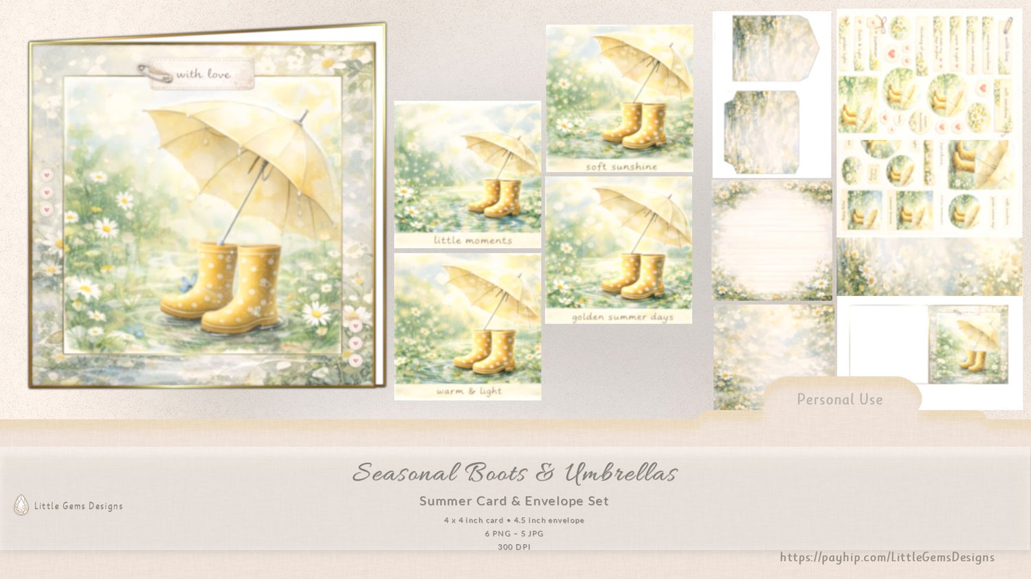 Seasonal Boots & Umbrellas - Summer - 4inch card Set