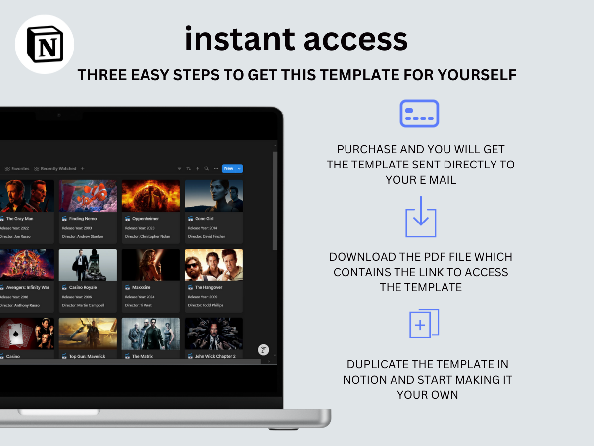This is a DIGITAL DOWNLOAD listing. No physical product will be sent to you. After your purchase is confirmed, you will receive a PDF document with a download link that will load the Notion template, then you need to click on the “Duplicate” tab in the top right-hand corner of the screen to add the template to your Notion account.