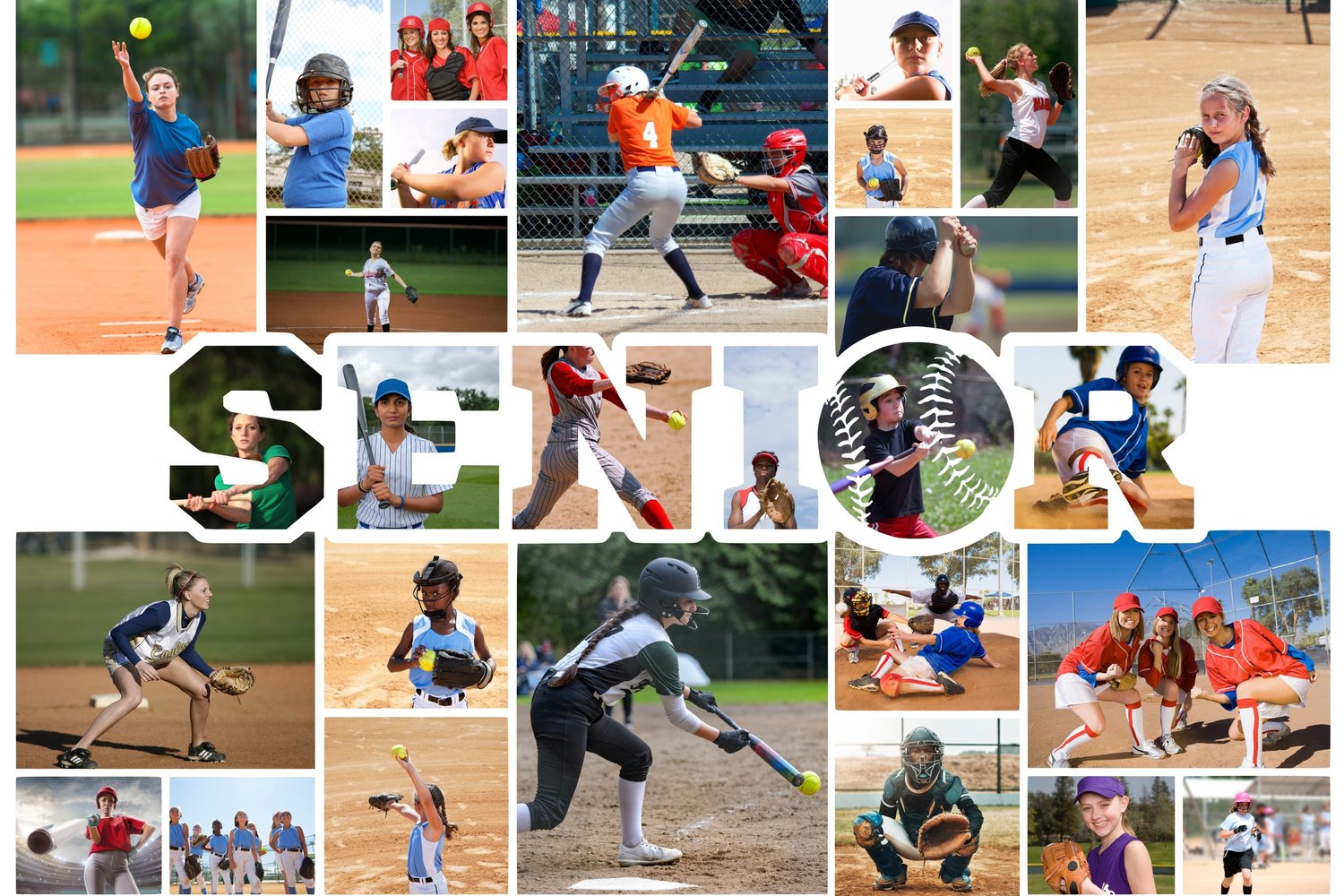 Softball senior multi photo collage Template – Instant Digital Download