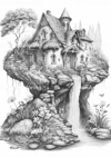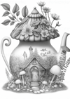 This book includes 22 grayscale illustrations of Land fairy houses - Set 1