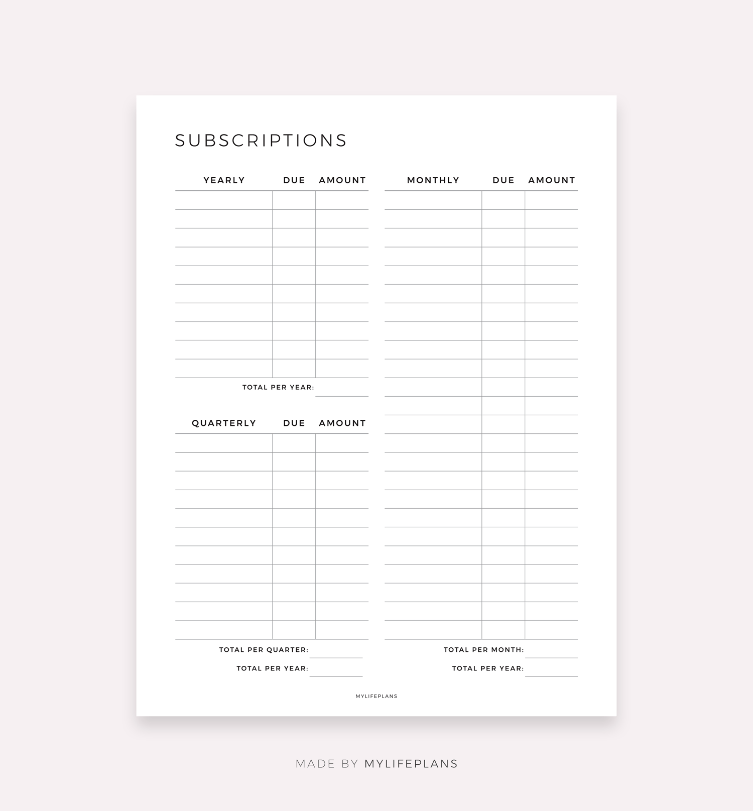 Monthly, Quarterly, Yearly Subscription Tracker, Digital Template for Goodnotes, Notability, Ipad