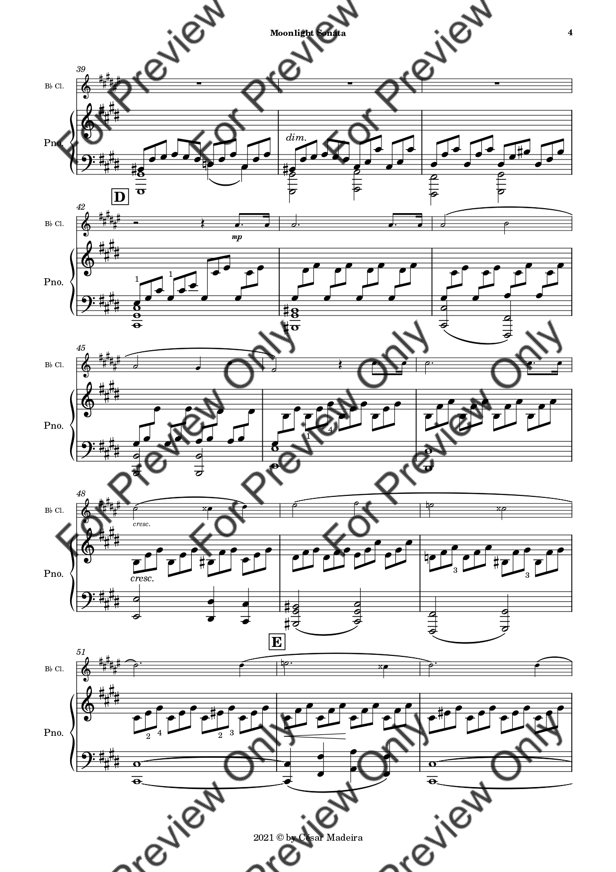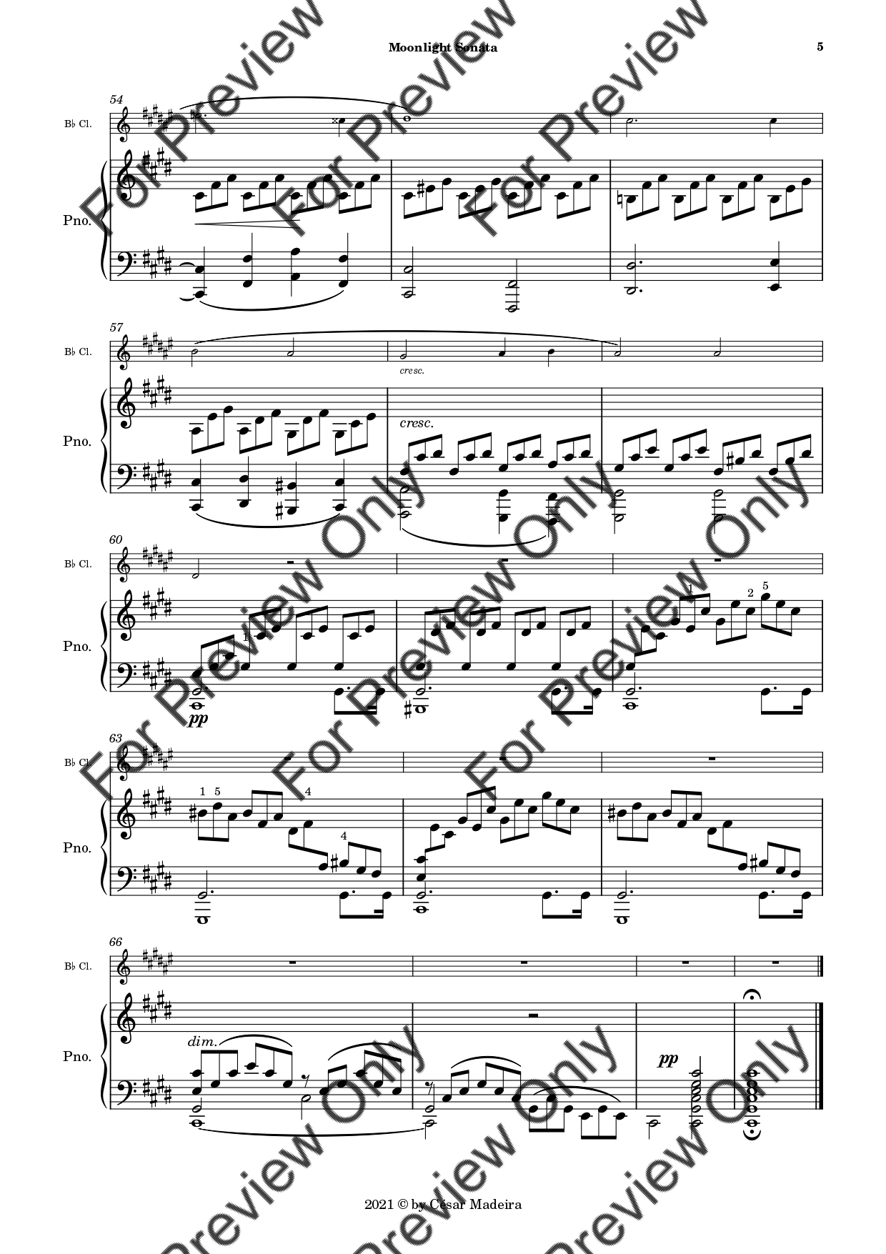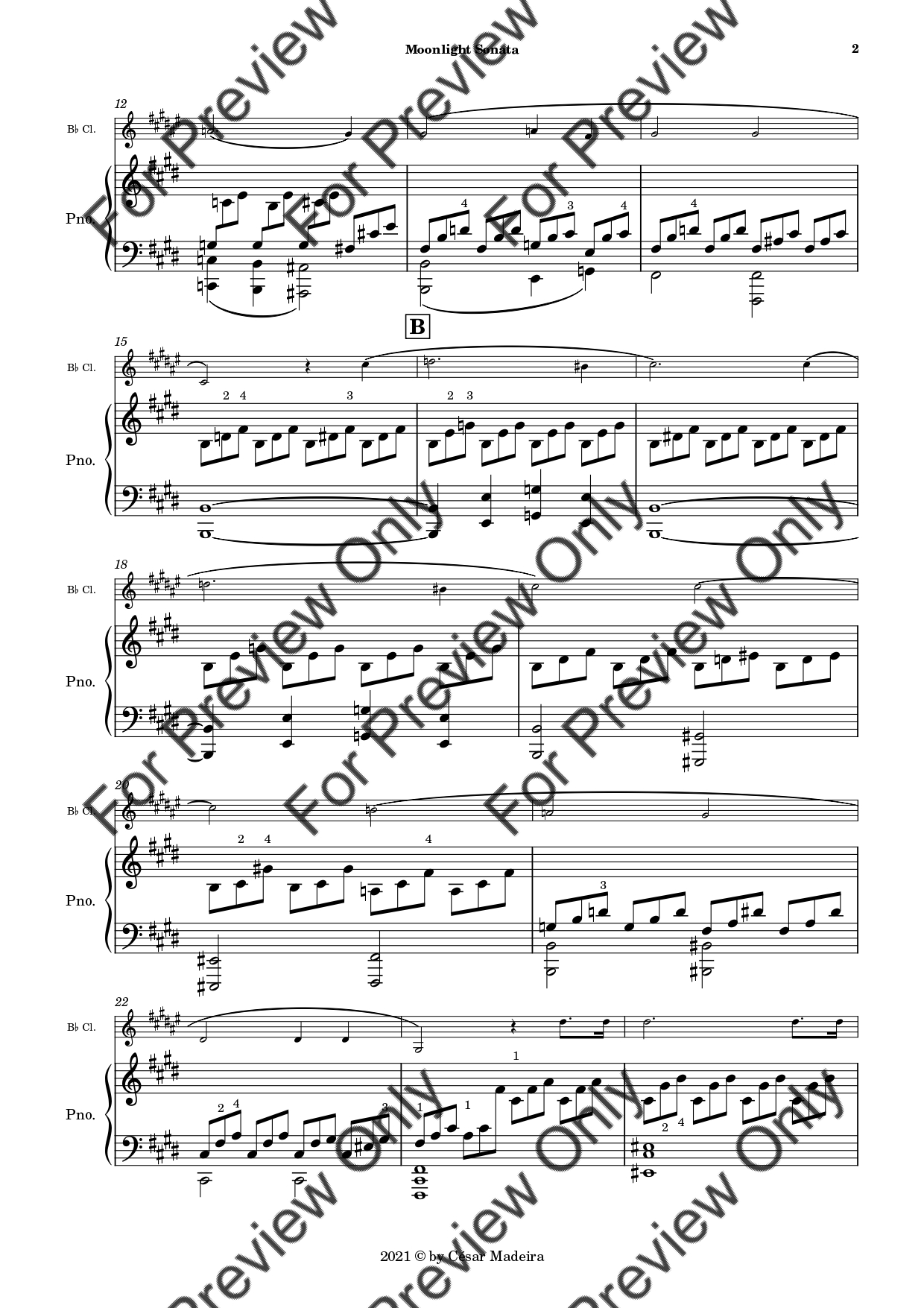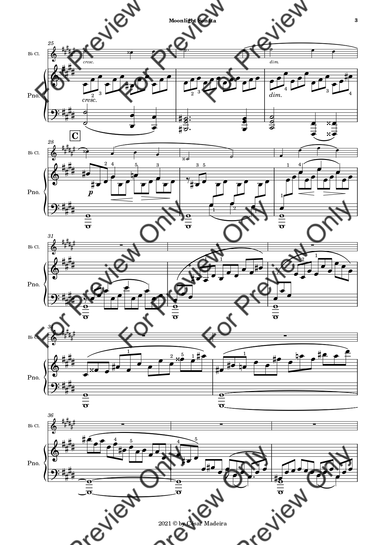 Moonlight Sonata (1 mov.) by Ludwig Van Beethoven. Arrangement for Bb Clarinet and Piano. With Full Score and Individual Parts. Have fun!