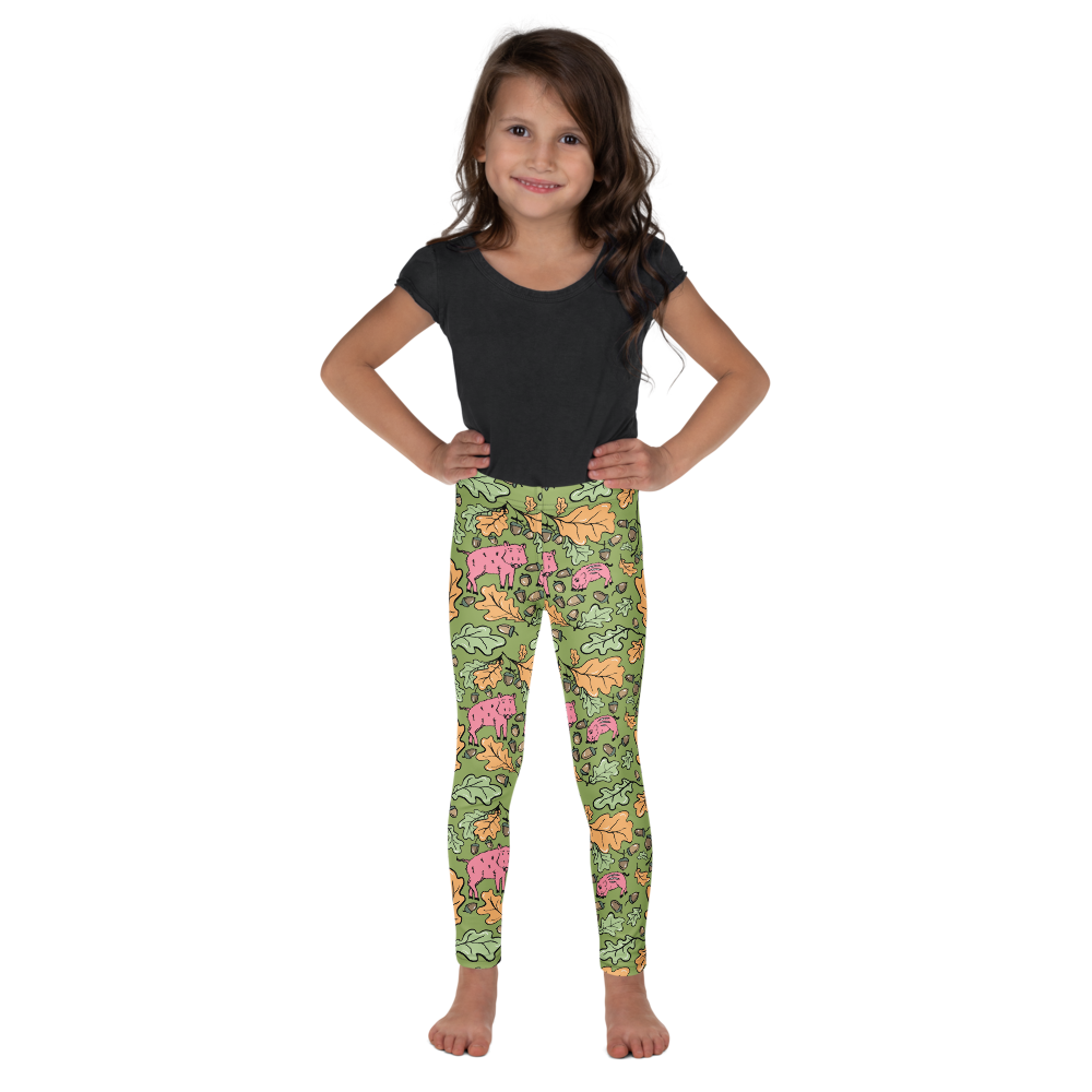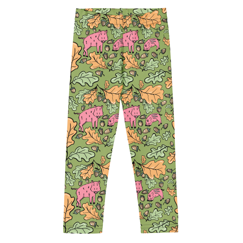 Bright, playful, and one-of-a-kind! These kids’ leggings feature my original hand-drawn print full of cute forest wild boar with piglet in pink, surrounded by fall warm yellow and green oak leaves with acorns — a design you won’t find anywhere else. Perfect for school, playdates, dance class, or just everyday adventures. I tested these leggings on my 3 year old child and they are great for outdoor play and print stay on very bright and nice.