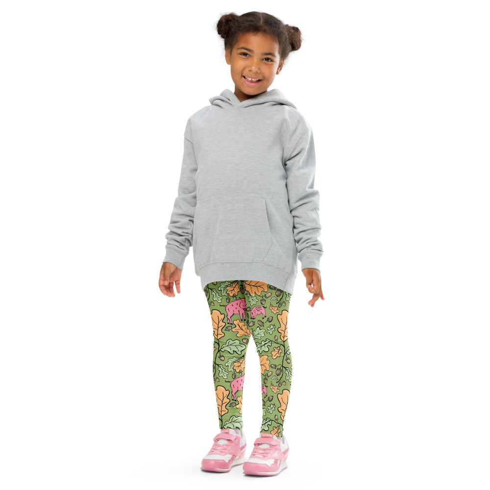 Cute kids fall piggy wild boar and oak leaves with acorn leggings-FREE shipping in US