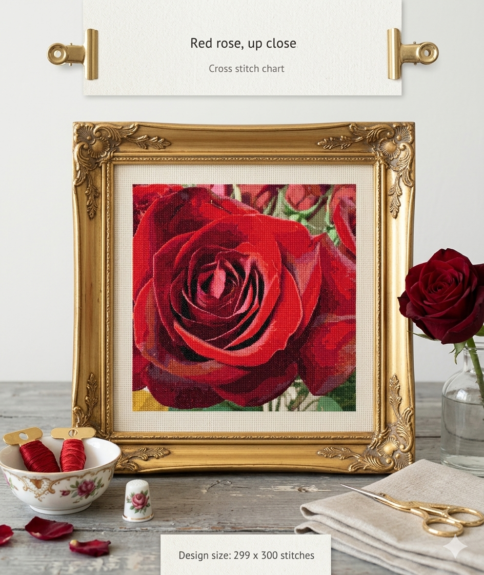 Whether stitched for love, remembrance, or pure appreciation of floral beauty, Red Rose, Up Close is a timeless design you’ll be proud to bring to life, one stitch at a time.