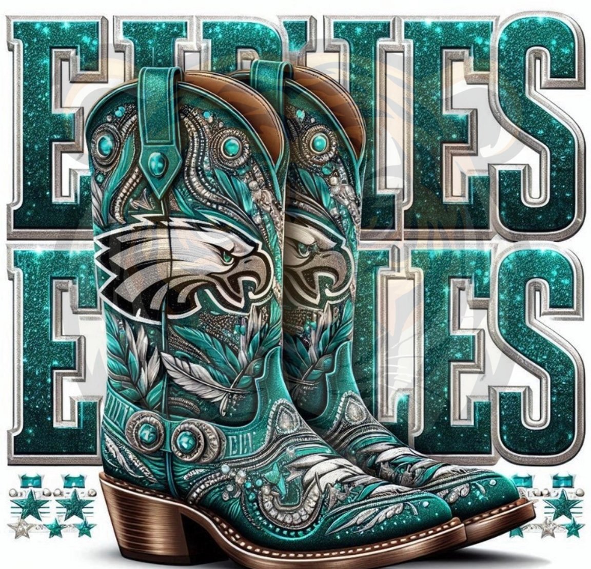 Show off your team pride with this unique **NFL Cowboy Boots Digital Design**! This high-quality PNG features a stylish pair of cowboy boots adorned with vibrant NFL-themed details, perfect for sports lovers and Western wear enthusiasts alike. Ideal for t-shirts, mugs, tote bags, and more, this design brings bold colors and intricate details to life.