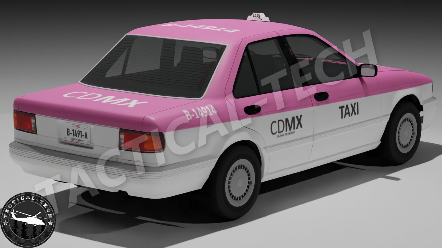 Mexico City Taxi Texture: The texture of the model is inspired by the typical cabs of Mexico City. It features the iconic colors used in these vehicles, such as pink and white, and carries the characteristic side lettering.