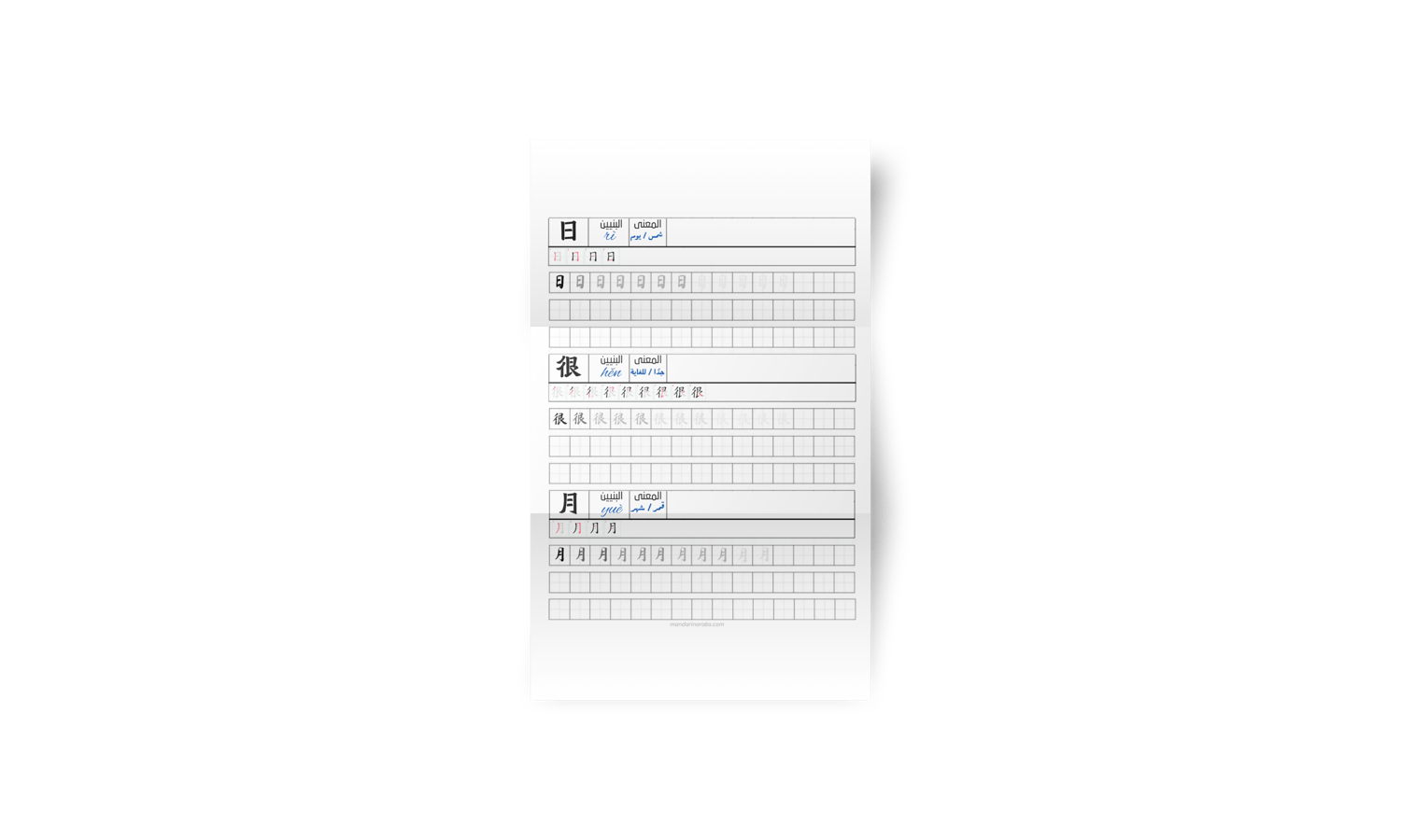 صفحات من كراس تعليم كتابة الرموز الصينية الجزء