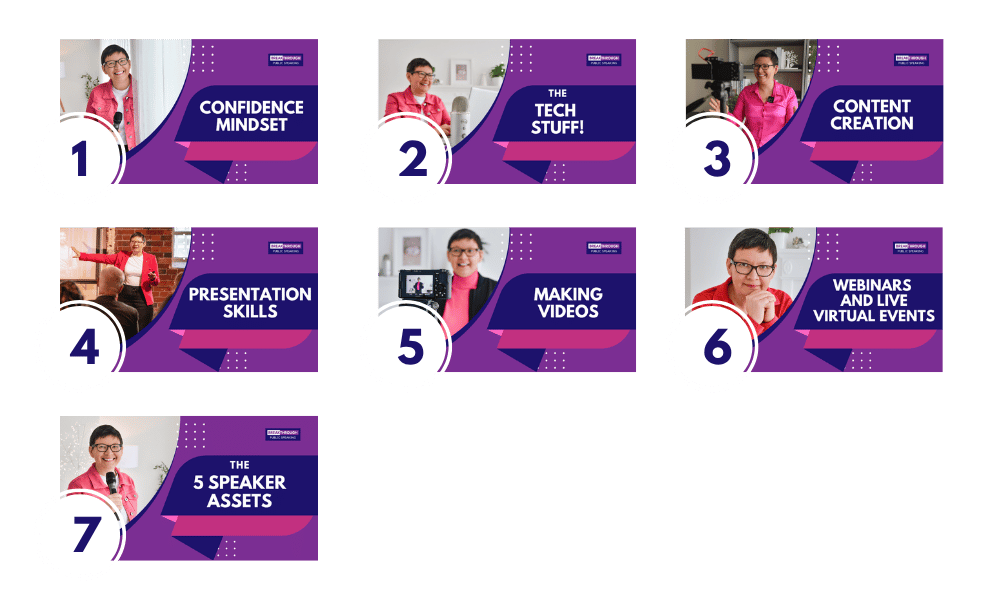 Imagine confidently delivering a keynote, posting videos without overthinking, and hosting your own webinars that attract dream clients.