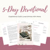 This 24-page digital daily devotional will help you deepen your relationship with God over 5 days with daily topics, scriptures, Bible stories, notes for your thoughts, and prayers to showcase His love for you and how you can love Him back.