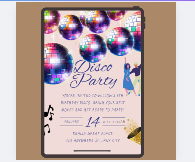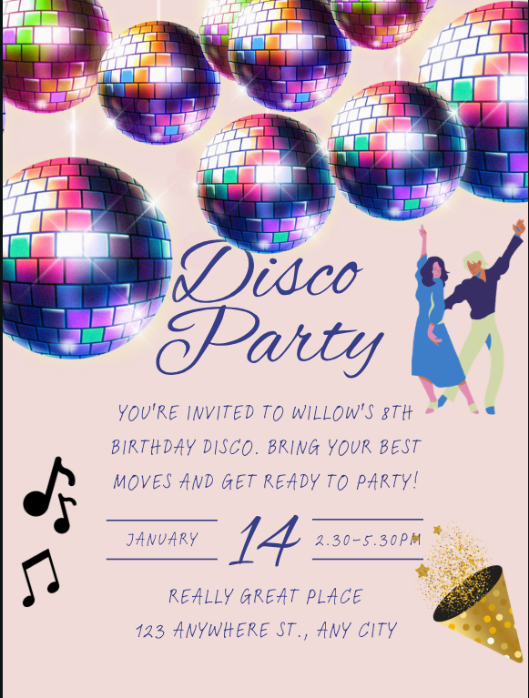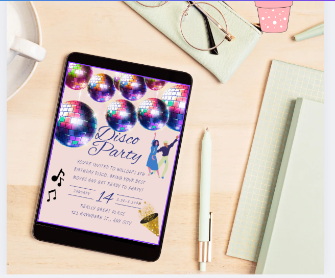 Disco Party Invitation Editable, Digital Invite, Custom Birthday Card, Party Invitation, Instant Download