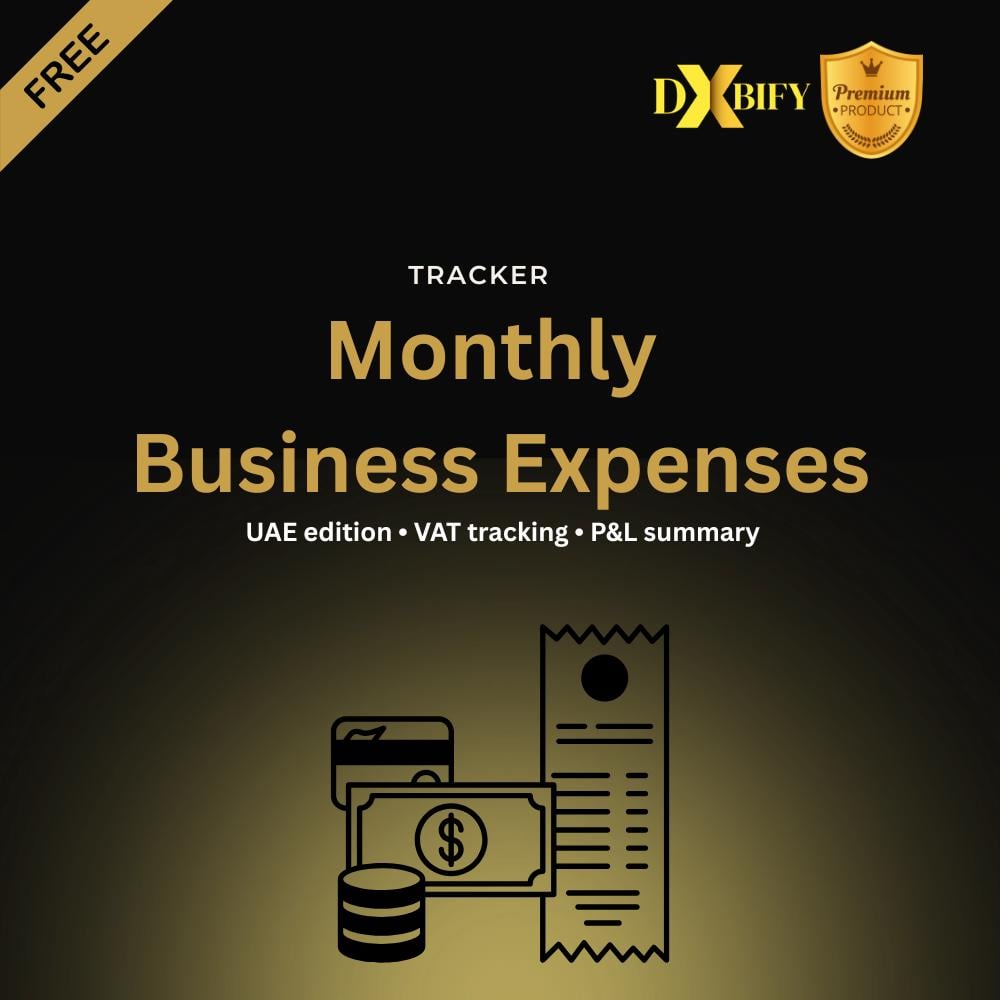 11 UAE-specific expense categories (Rent, DEWA, Salaries, Visa/PRO, Marketing, Travel, Software, Professional Fees, Insurance, License/Govt, Other).