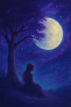 This ethereal print features a moonlit woman sitting beneath a tree, bathed in the quiet glow of healing and reflection. The purples, blues, and silvery hues create a sacred space — for grief, prayer, stillness, or wonder.