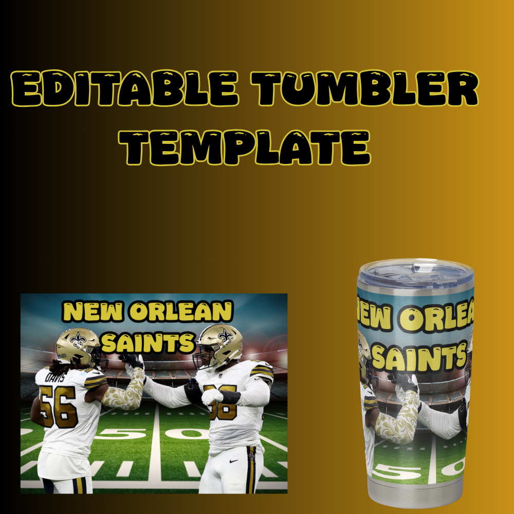Show off your team spirit in style with this high-resolution New Orleans Saints-inspired custom tumbler PNG template! Designed for 20oz skinny tumblers, this digital file is perfect for sublimation or printing on demand. Whether you're crafting for yourself or creating gifts for Saints fans, this template brings the black & gold magic to life.