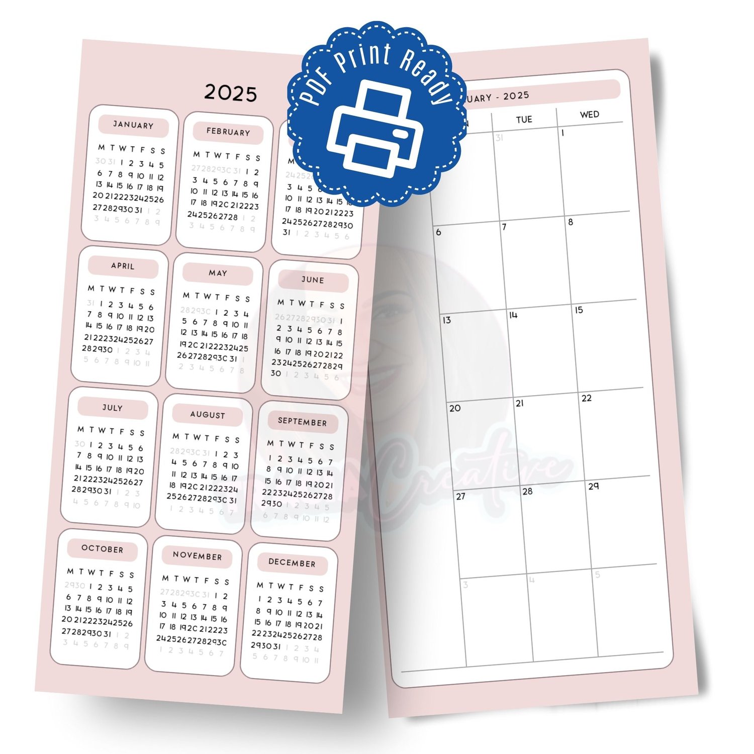 Pink 2025 Monthly Planner - Printable Digital Download PDF