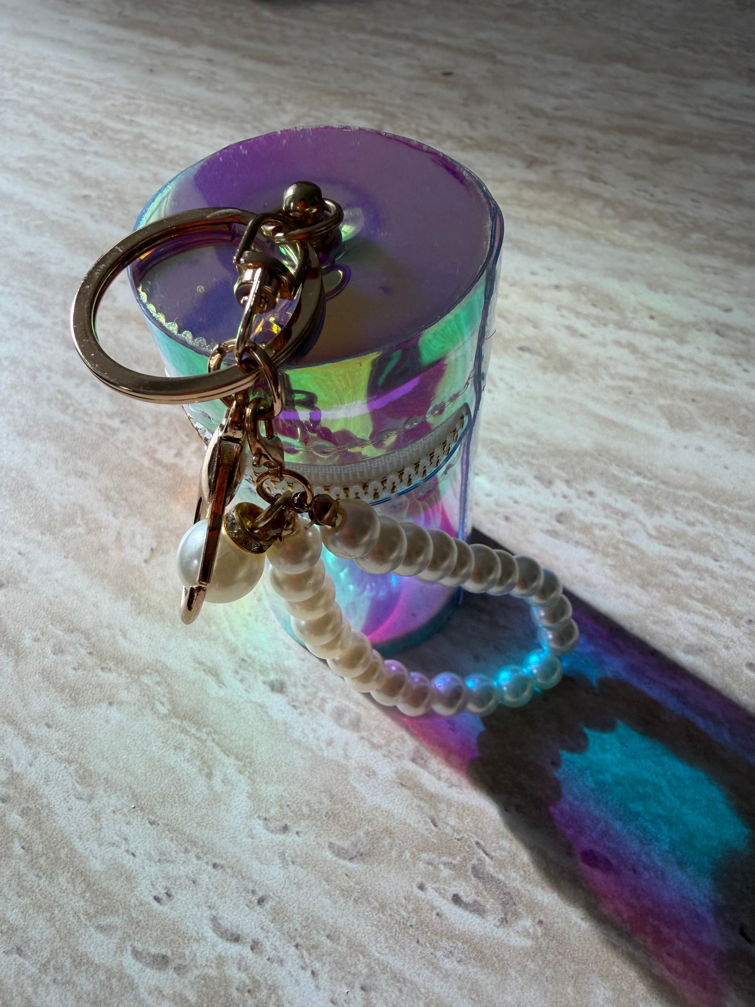 Équipé d’un anneau porte-clés et d’une chaîne de perles décorative pour l’attacher facilement à un sac, un téléphone ou un trousseau.