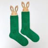 Hand knitted socks are designed to be slightly smaller than the foot length to give a small amount of negative ease. This means that they will hug the foot and leg and stay in place.