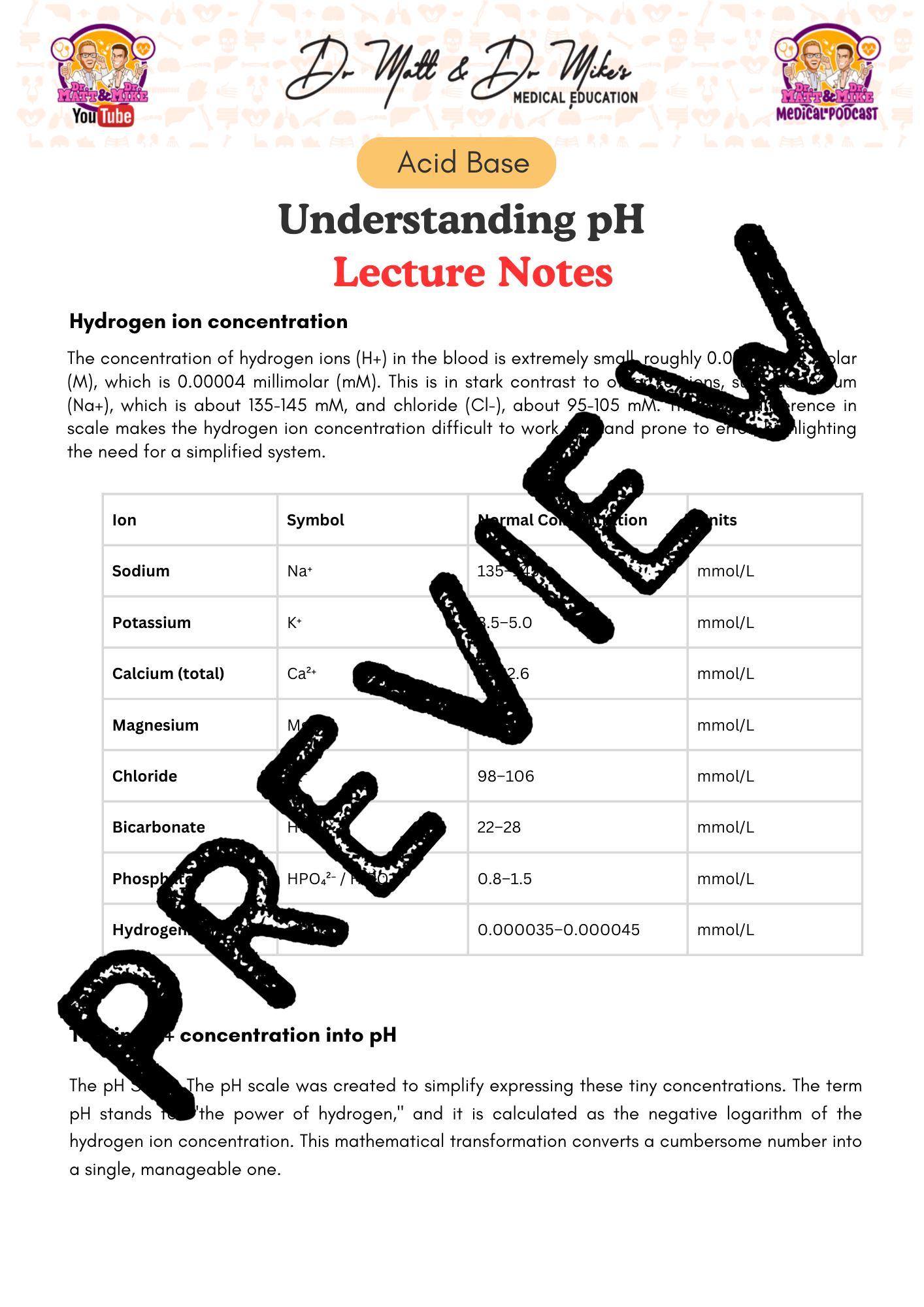 These notes are designed to complement the YouTube video by Dr Matt & Dr Mike titled: Understanding pH in Medicine.