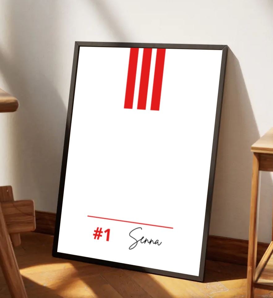 This minimalist and powerful design highlights Ayrton Senna’s legacy and adds a prestigious motorsport touch to your collection, office, or display area.