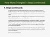 The Teambuilders series from Manage Train Learn is a collection of 43 classic and original teambuilding exercises which are ideal for groups who want to improve their teamwork and teambuilding skills. There are 14 categories in the collection, including "Design and Build Games", "TV-Based Games"; and "Outdoor Games". Each teambuilder is a PowerPoint slide presentation and comes with full instructions, steps, timings, and worksheets meaning you have everything you need to run a successful exercise. Having used these teambuilders in the training room many times, we can guarantee that, after you run one of these Teambuilders, your team will grow in confidence and spirit, right before your eyes. This presentation is "How Many Triangles?" and consists of 17 slides in the Geometric games category.