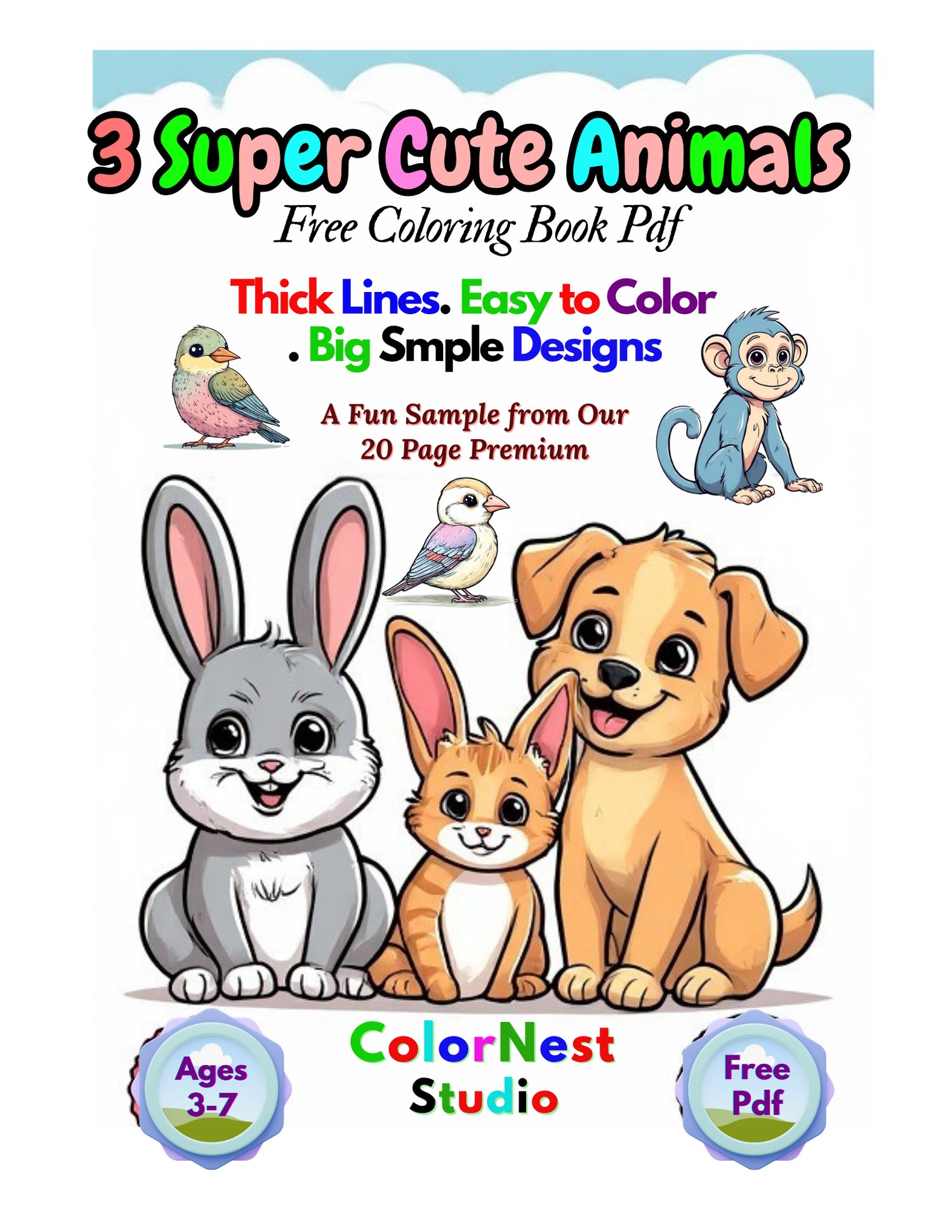 Cute Animals Coloring Book – FREE Sample pdf (Ages 3–7)