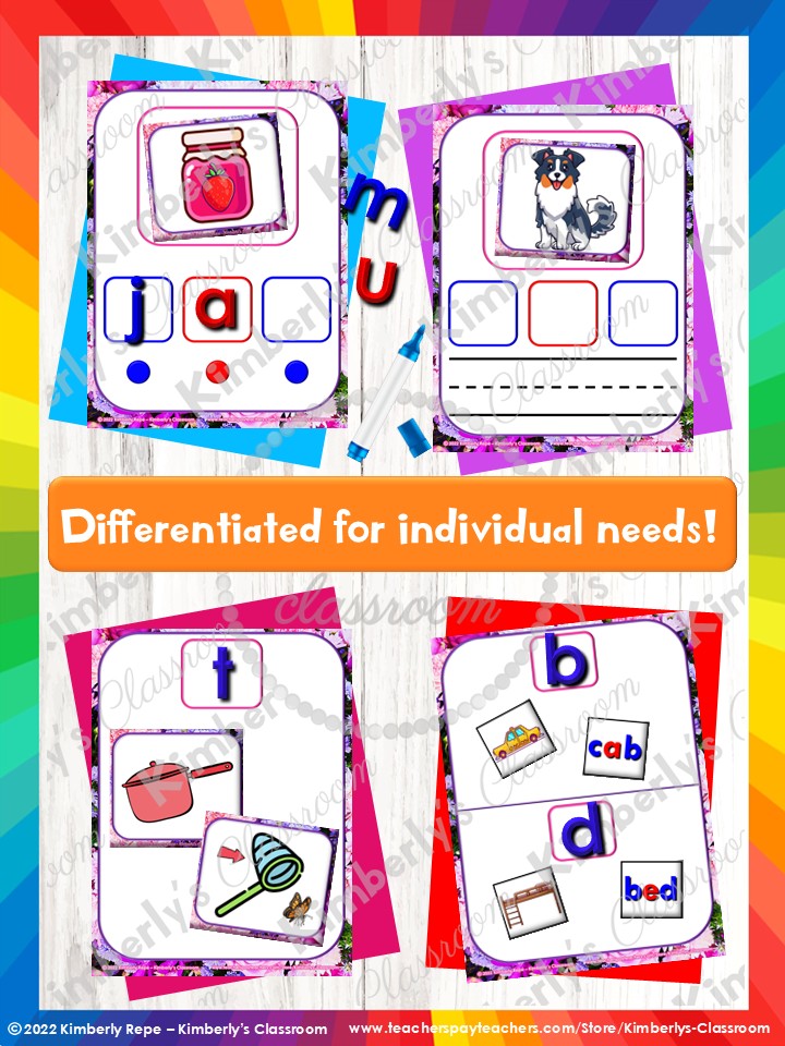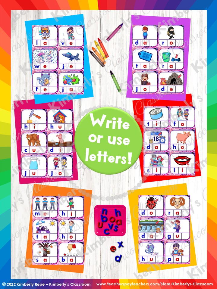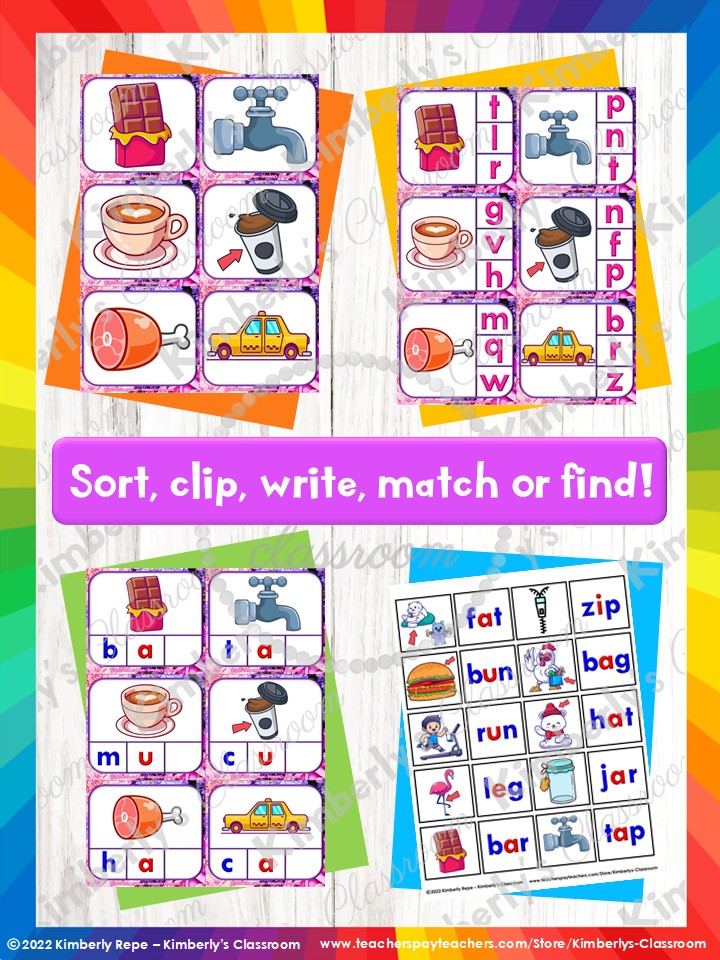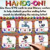 ✏️Students practice ending letter sounds, letter recognition, building CVC words, writing CVC words, sorting CVC words by ending letter sound, matching pictures to words, phonemic awareness, fine motor skills, and more!