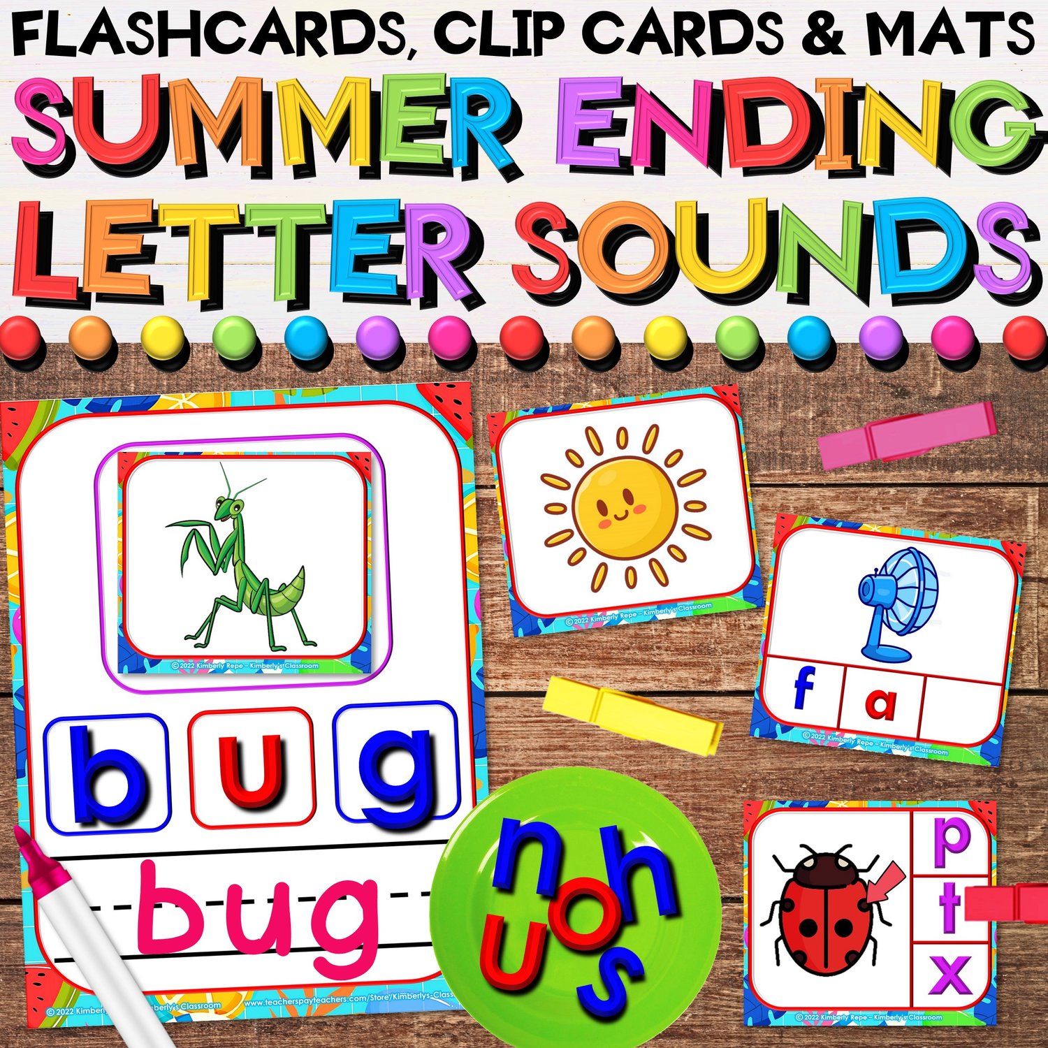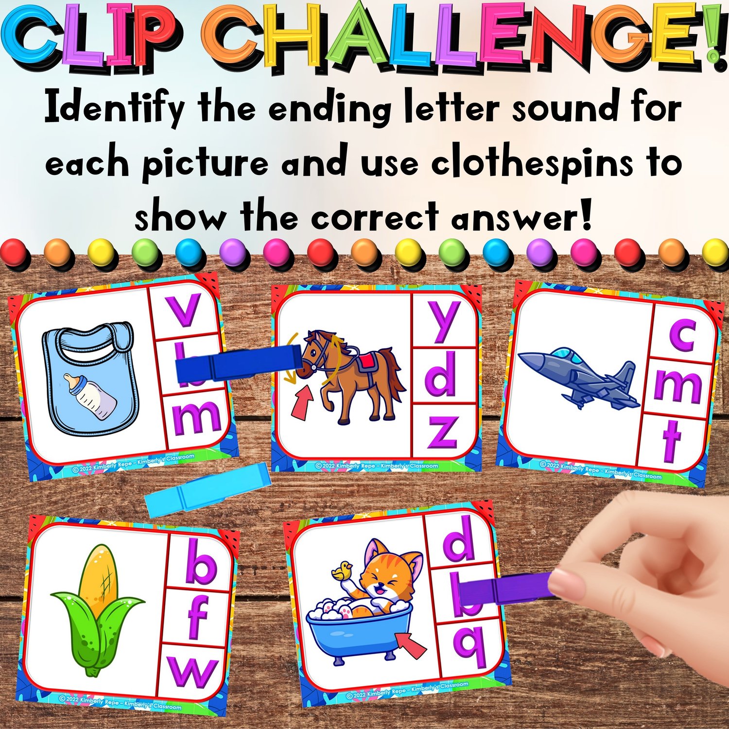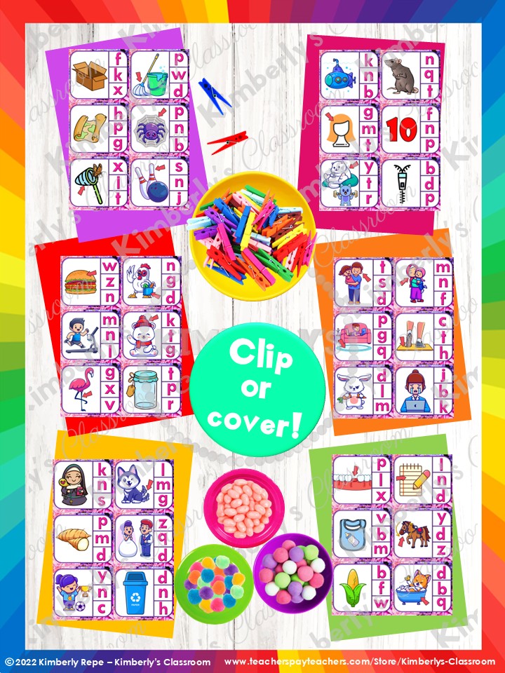 ☑ Ending letter sounds - clip cards (22 pages, 132 cards)