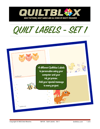EACH QUILTBLOX QUILT LABEL SET INCLUDES 4 DIFFERENT DESIGNS - each provided to you - with and without lines to make it easy to either customize your message using your favorite software program or print out on your own fabric and hand write your message.