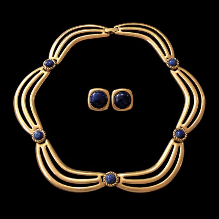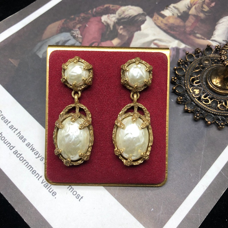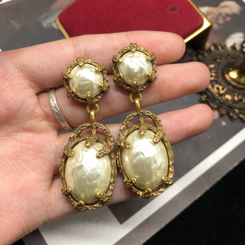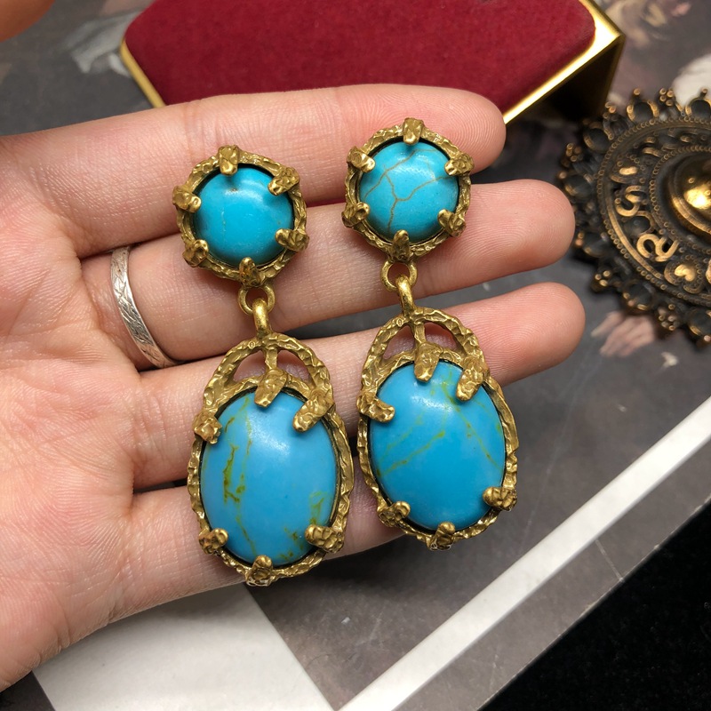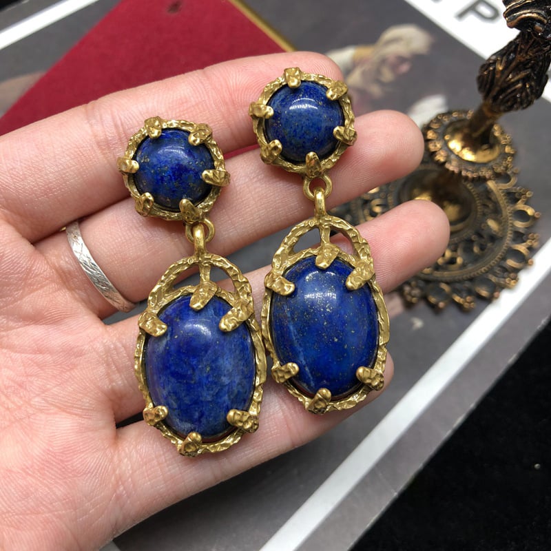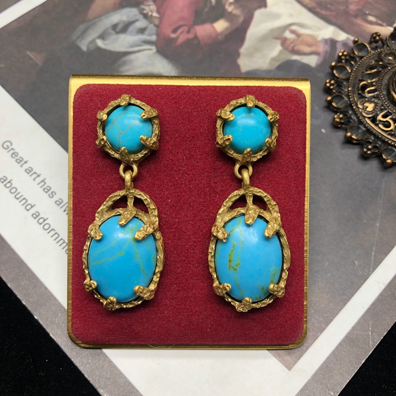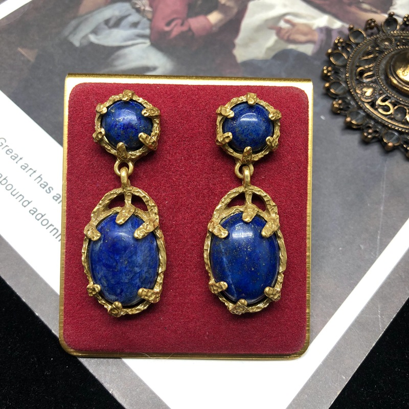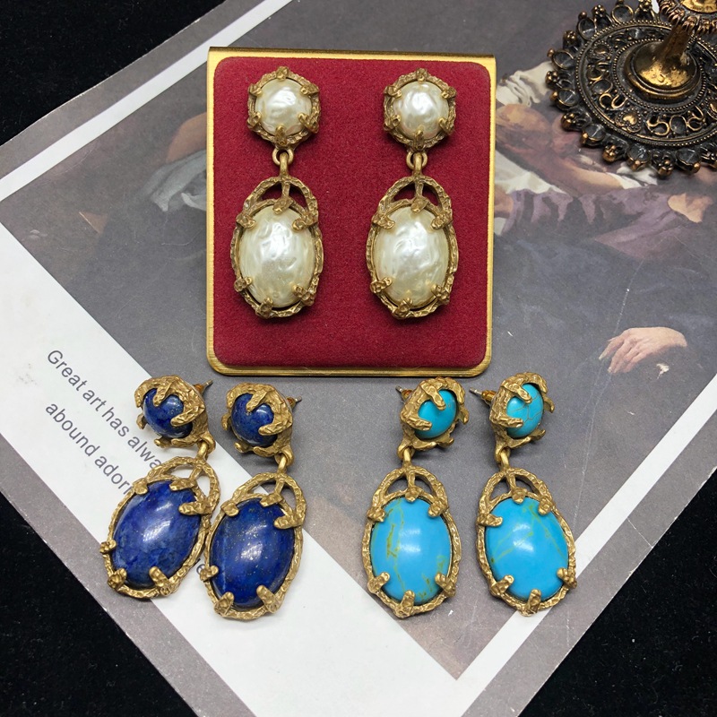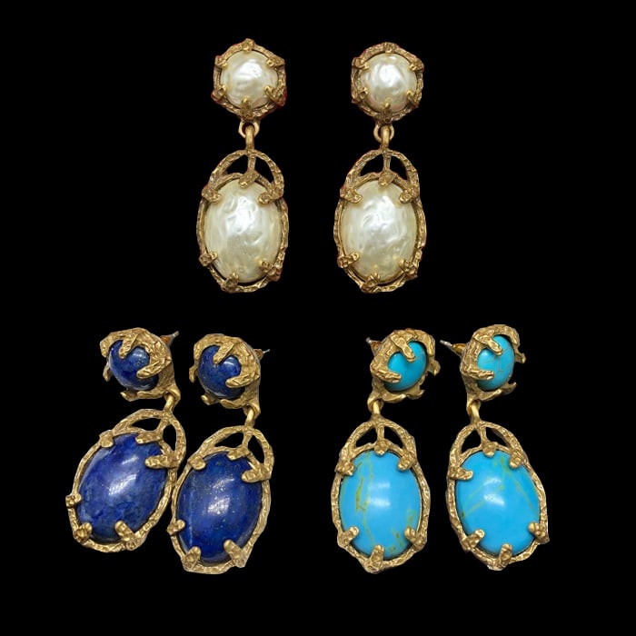 Vintage court lapis lazuli turquoise pearl claw copper drop earrings