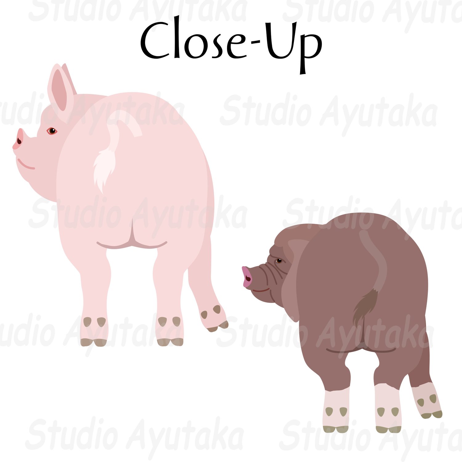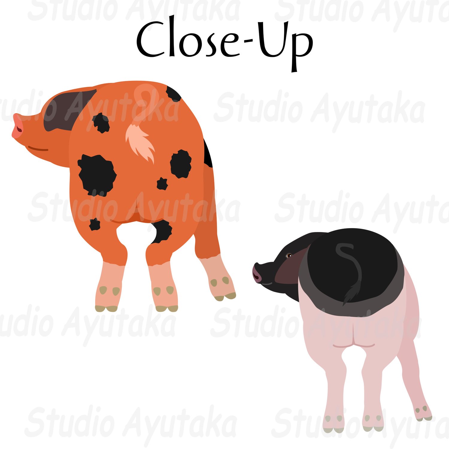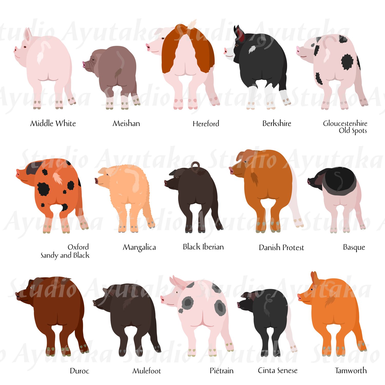PNG×15(1 png has 1 pig, without breed names), 300dpi, RGBcolor, transparent back, longest side w:70mm(821px) h:85mm(994px)