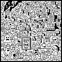 A high-quality PDF of a page from my coloring book; Doodle Worlds Book 1.