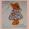 They are cotton fabric hand stitched onto cotton muslin and then a running stitch of embroidery floss outlines with small flowers embroidered on the bonnets. They are perfectly rustic and vintage looking but certainly not professionally hand stitched. There are slight discolorations in the muslin on some of the blocks but nothing that will detract from their charm.