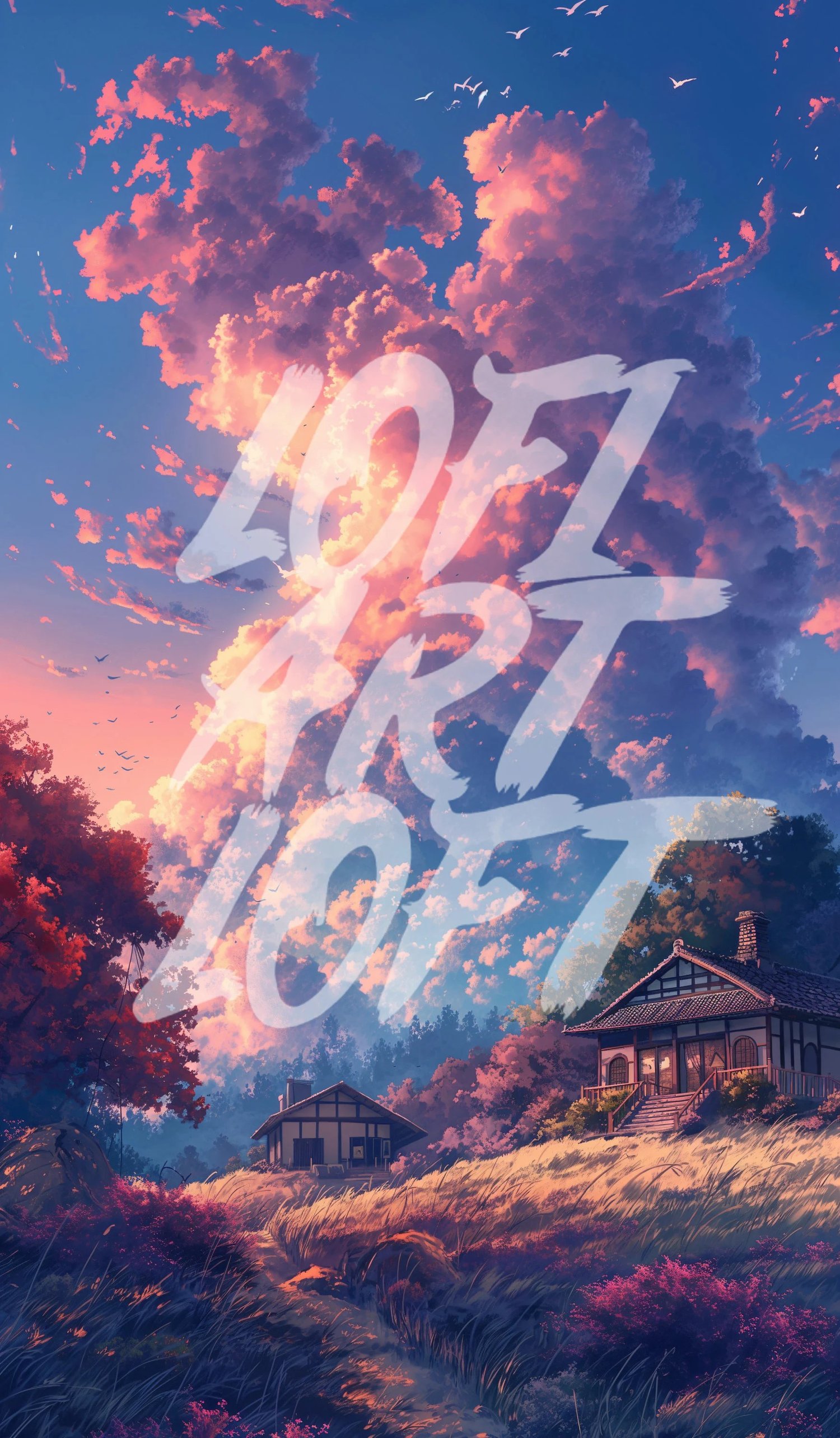Spring Sunset Dream - UHQ Digital Lofi Anime Art Print | #36