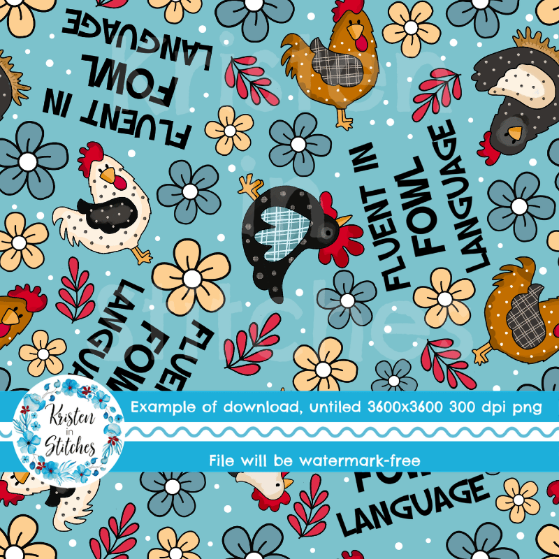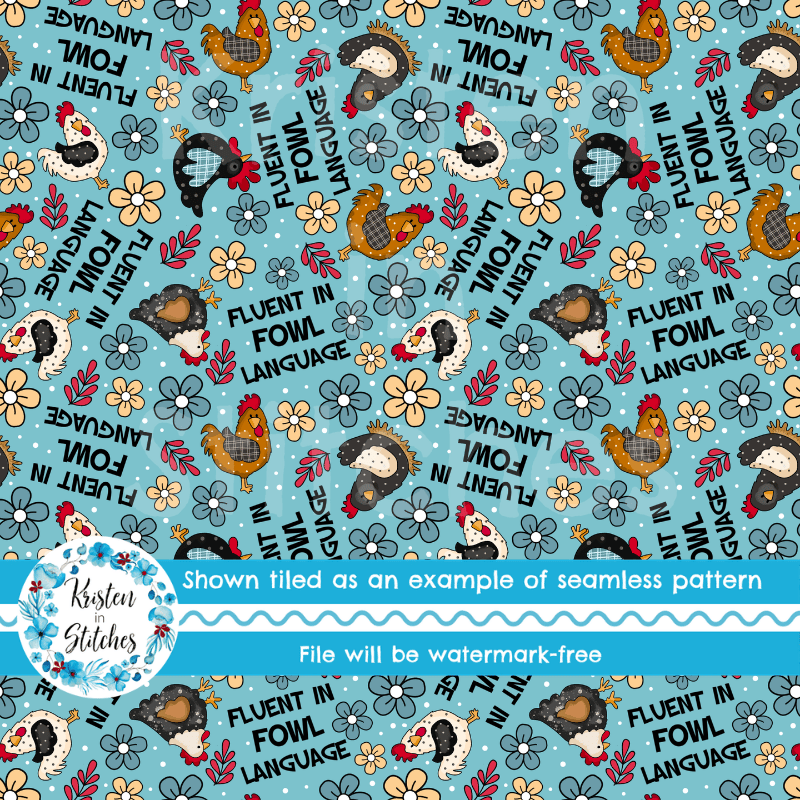 Fluent in Fowl Language Seamless Pattern, Sarcastic Chickens