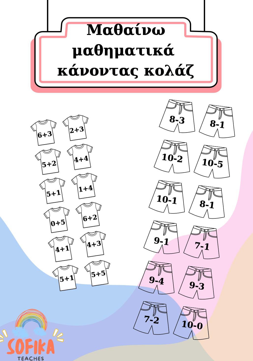 Με το υλικό «Μαθαίνω μαθηματικά κάνοντας κολάζ», οι μαθητές σου θα εξασκηθούν στις βασικές μαθηματικές πράξεις, ενώ παράλληλα θα δημιουργούν τα δικά τους «ρούχα»!