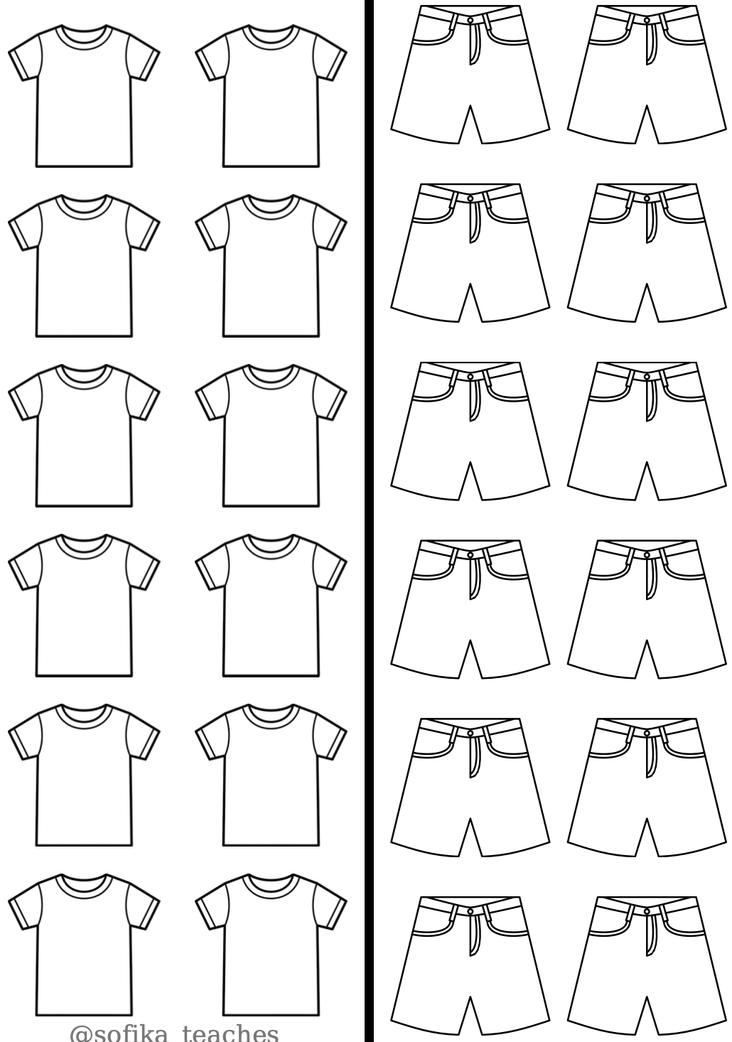 - Φύλλα εργασίας με χαριτωμένα σχέδια από μπλουζάκια και σορτς.