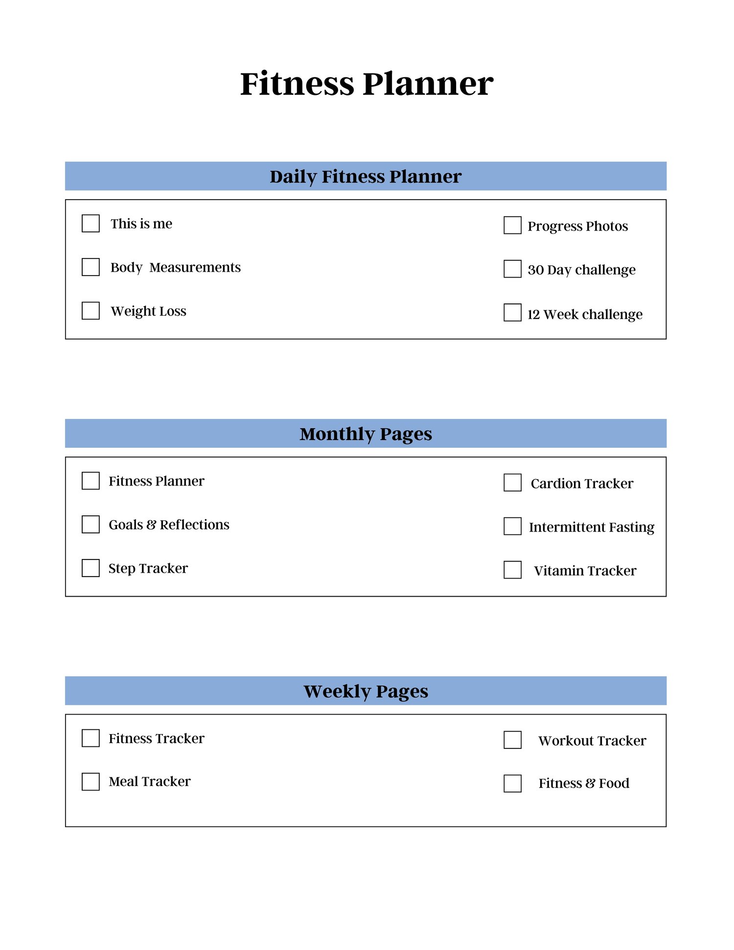 Printable Fitness, Planner Digital Workout Planner, Printable Weight loss Tracker, Printable Fitness Journal, Digital Fitness Planner Good notes.