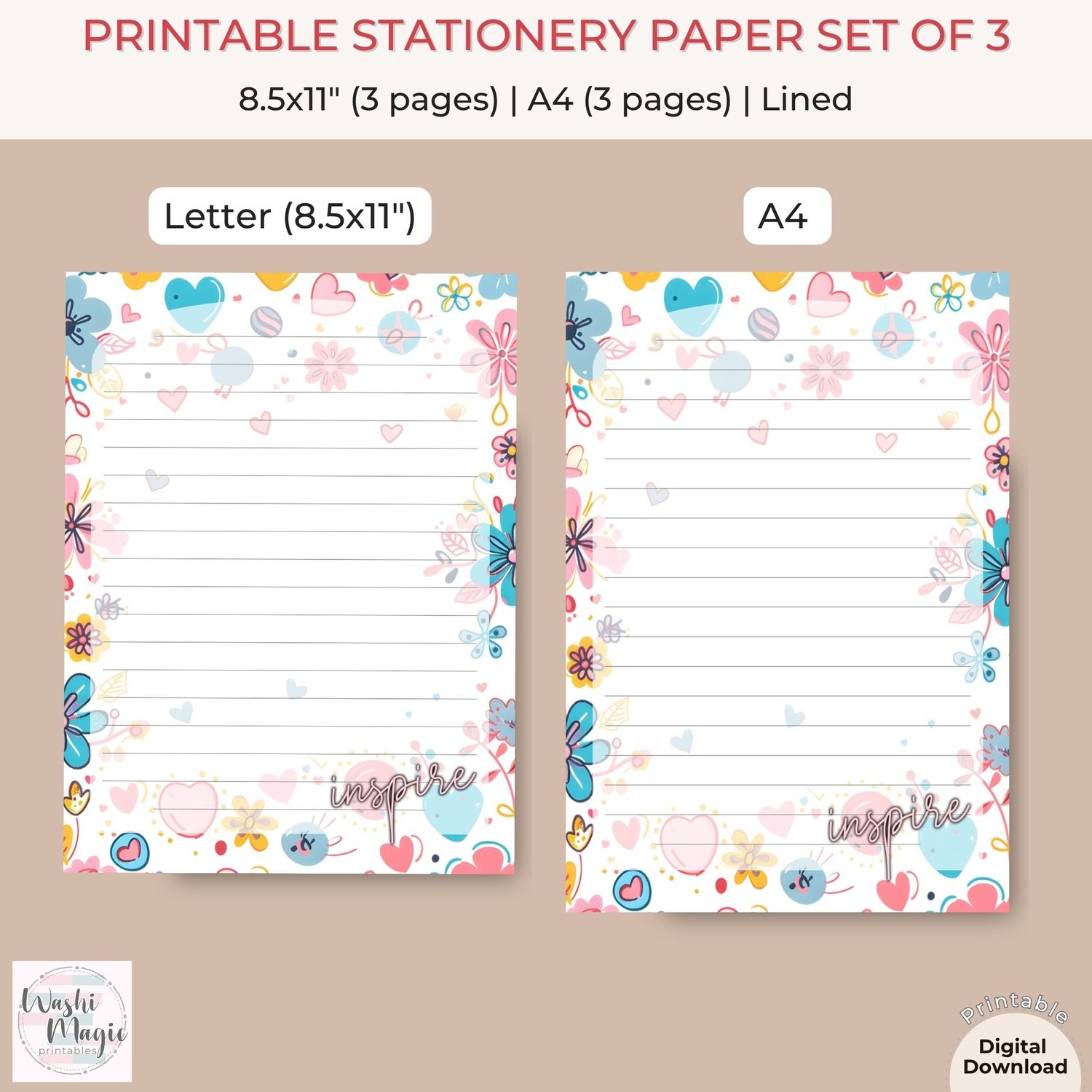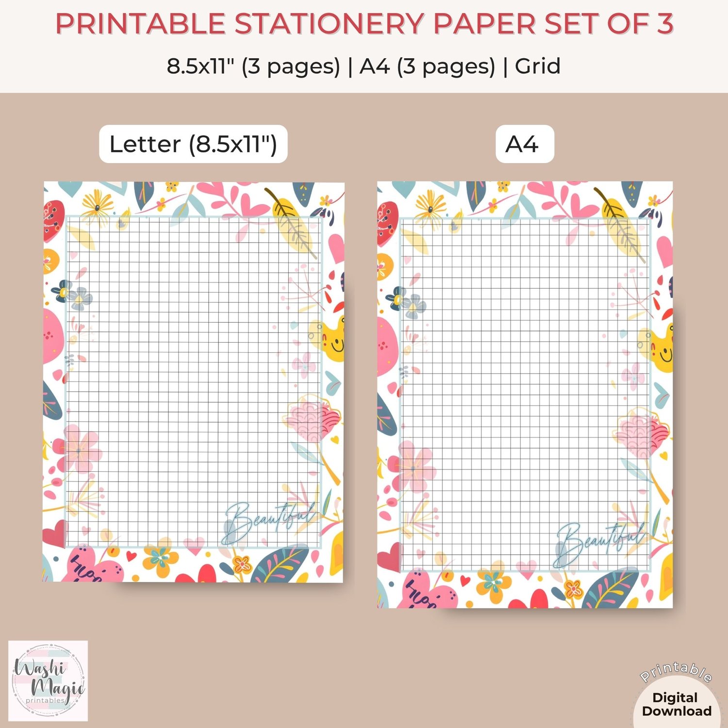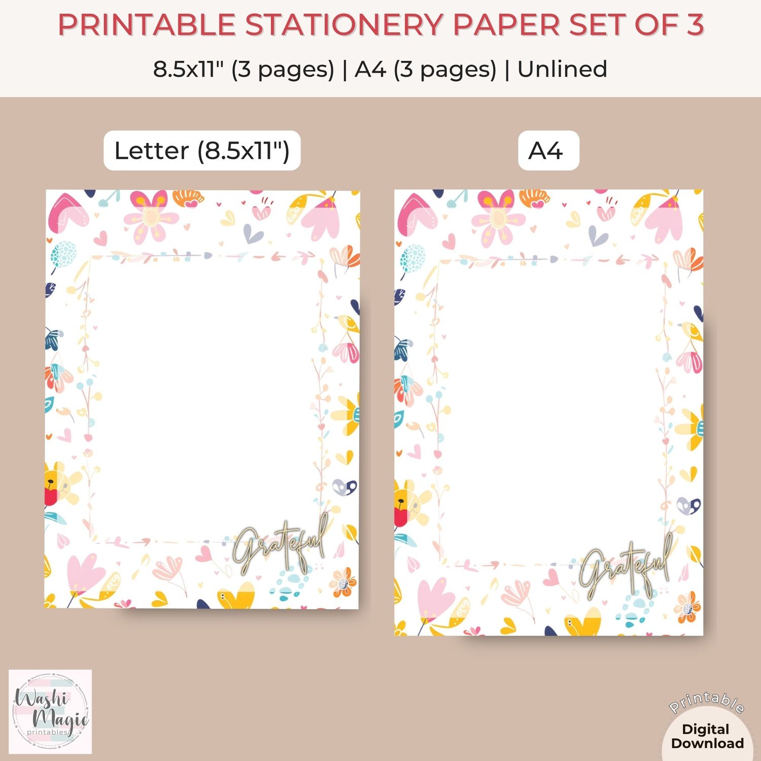 Simply download, print, and enjoy a burst of color on your desk. Ideal for personal use or as a thoughtful gift for friends and family. Elevate your correspondence today with this enchanting stationery set!