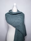 This big, elegant, rectangular wrap is worked back and forth in rows on the bias, from one corner at a short side diagonally to one corner on the opposite short side. The natural bias of this wrap makes it a parallelogram, but it can be blocked to a rectangle easily.