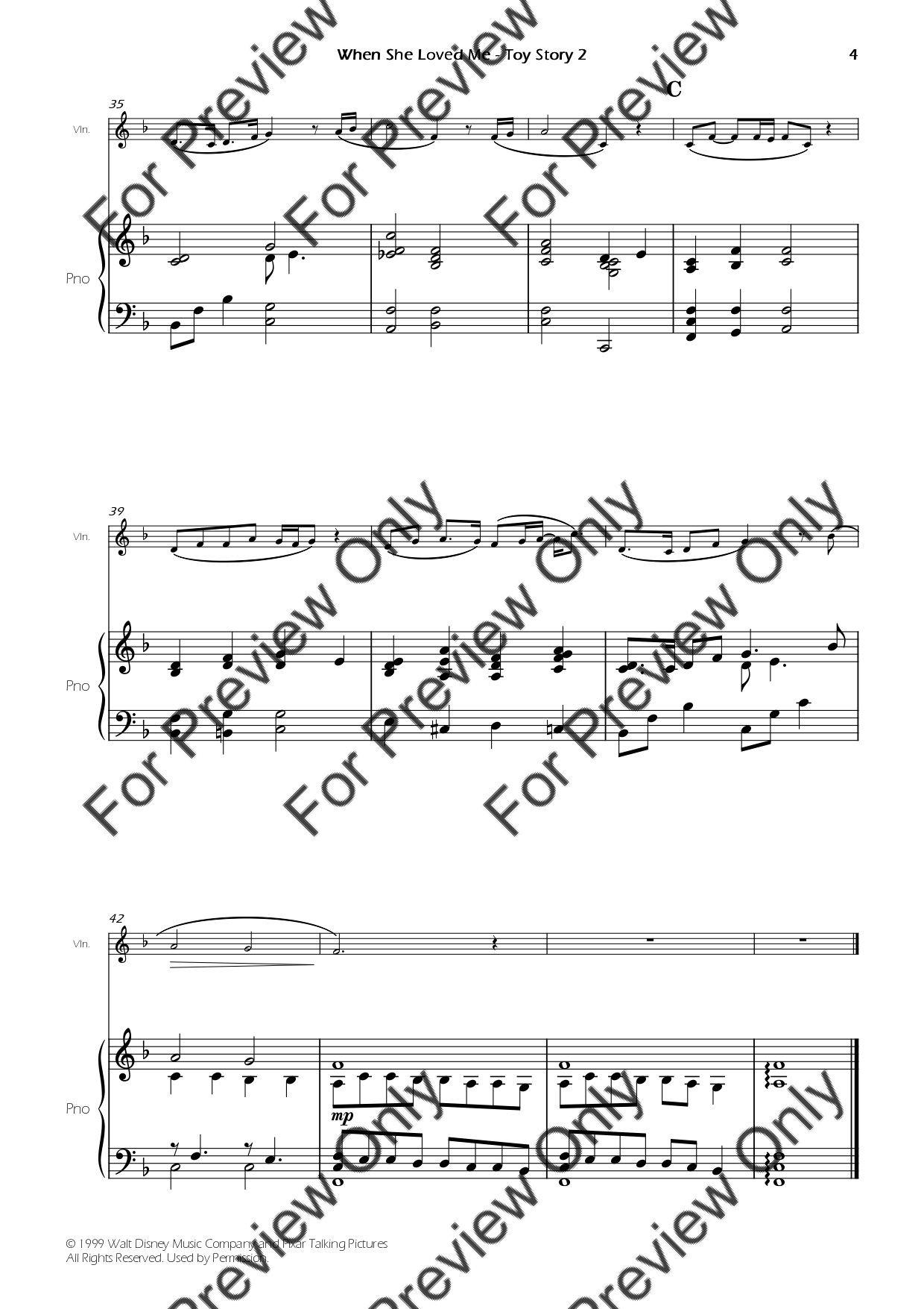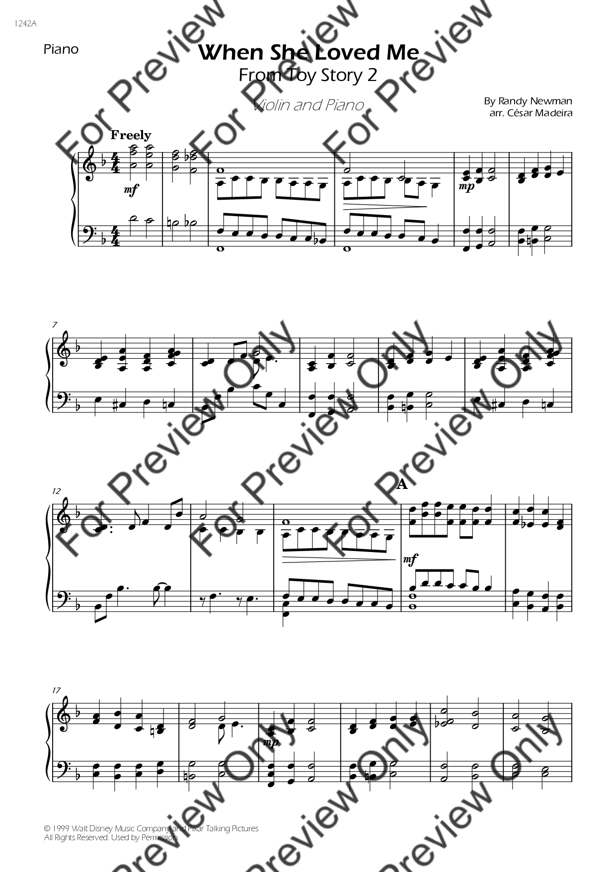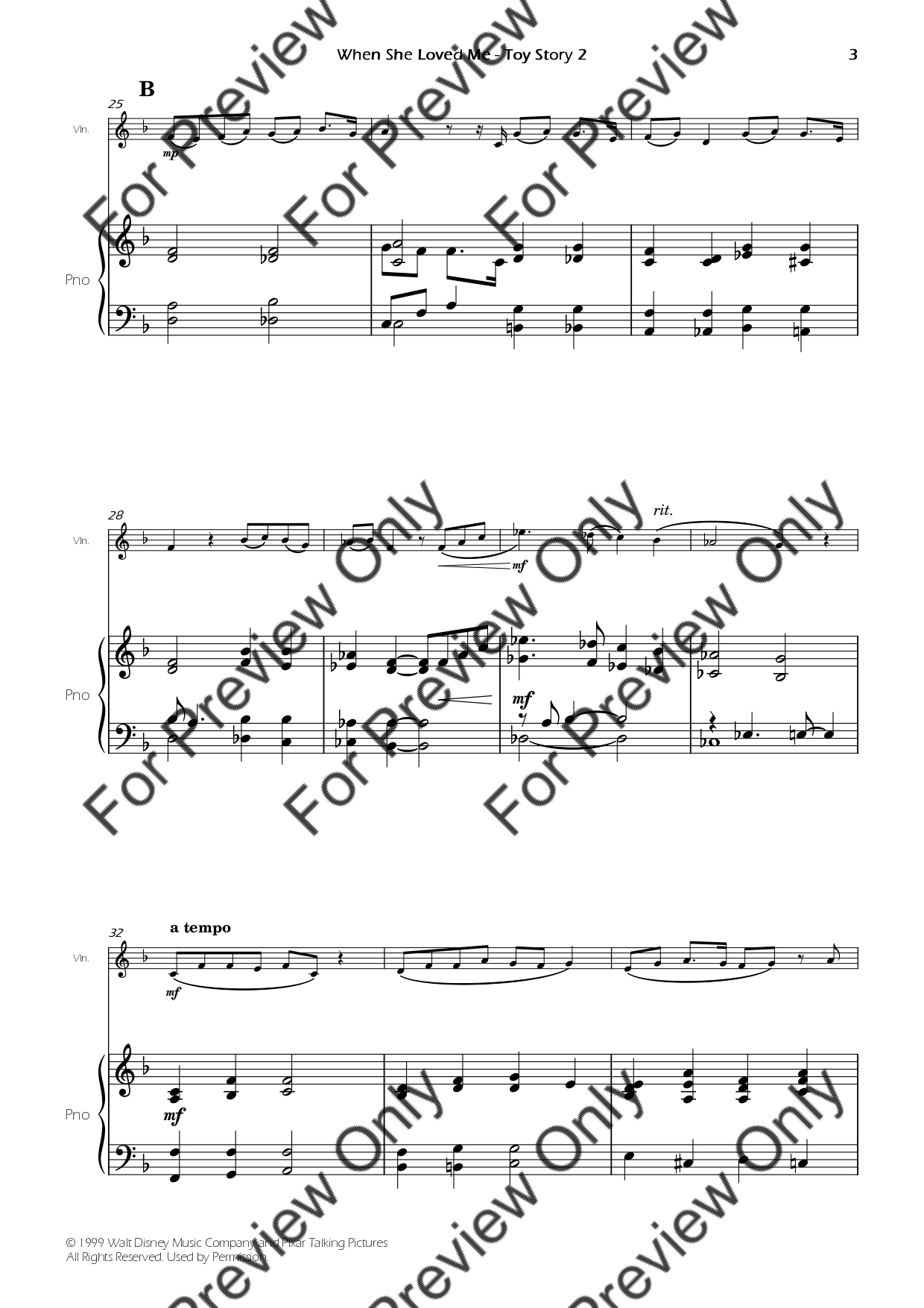 When She Loved Me from Toy Story 2 by Randy Newman. Arrangement for Violin and Piano. With Full Score and Individual Parts. Have fun!