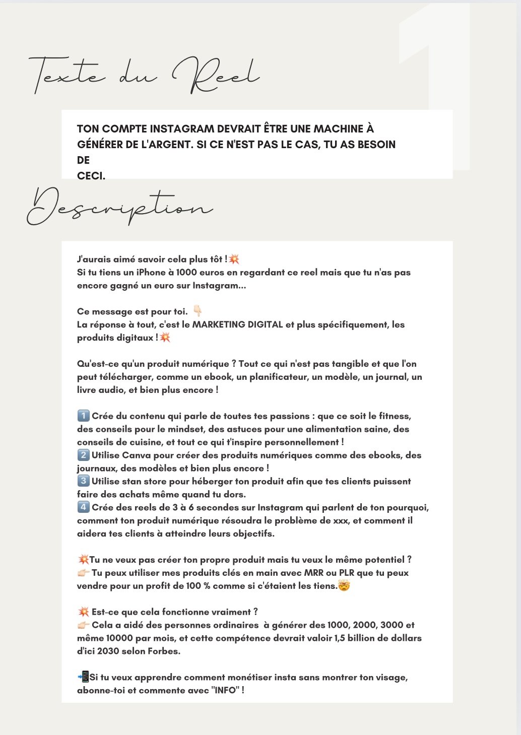 100 REELS prêt à l'emploi avec TEXTE , HOOK & DESCRIPTION