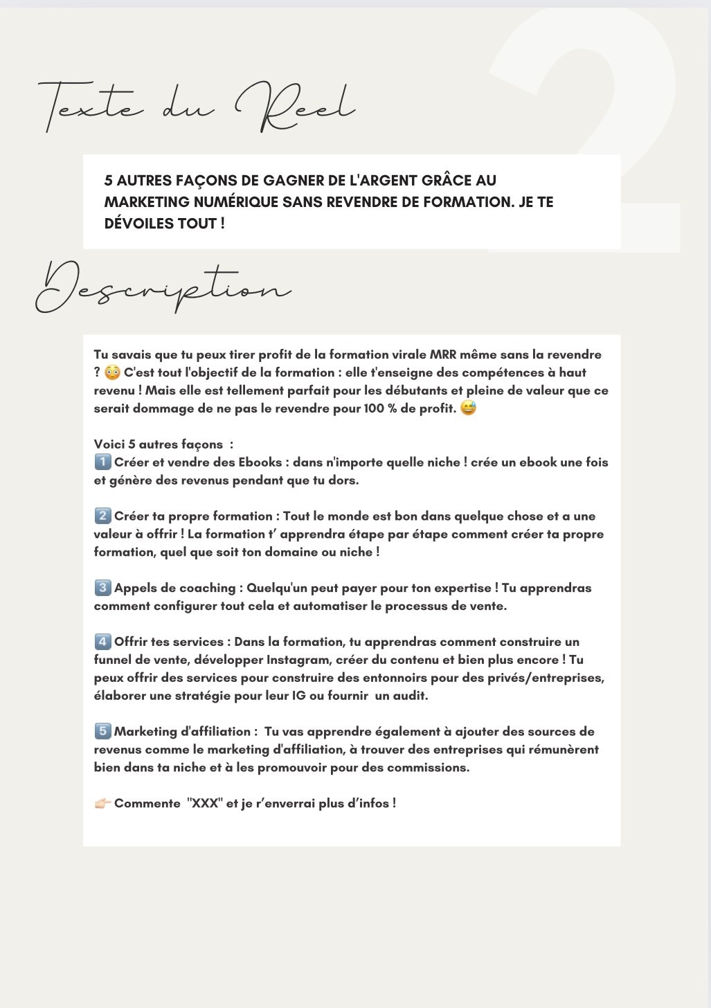 -Gain de temps : pratiquement vous avez votre contenu prêt pour les prochains 50 jours ! (avec 2 REELS par jour!)