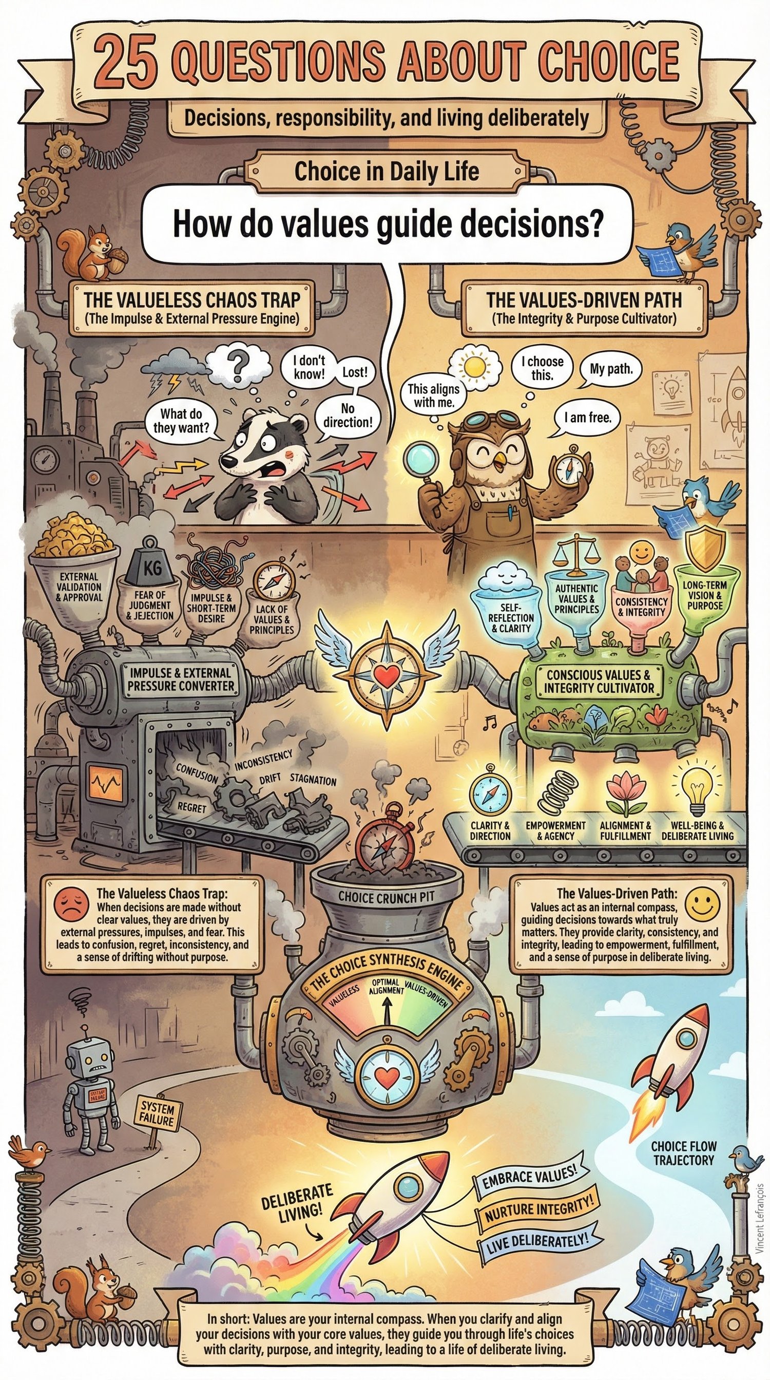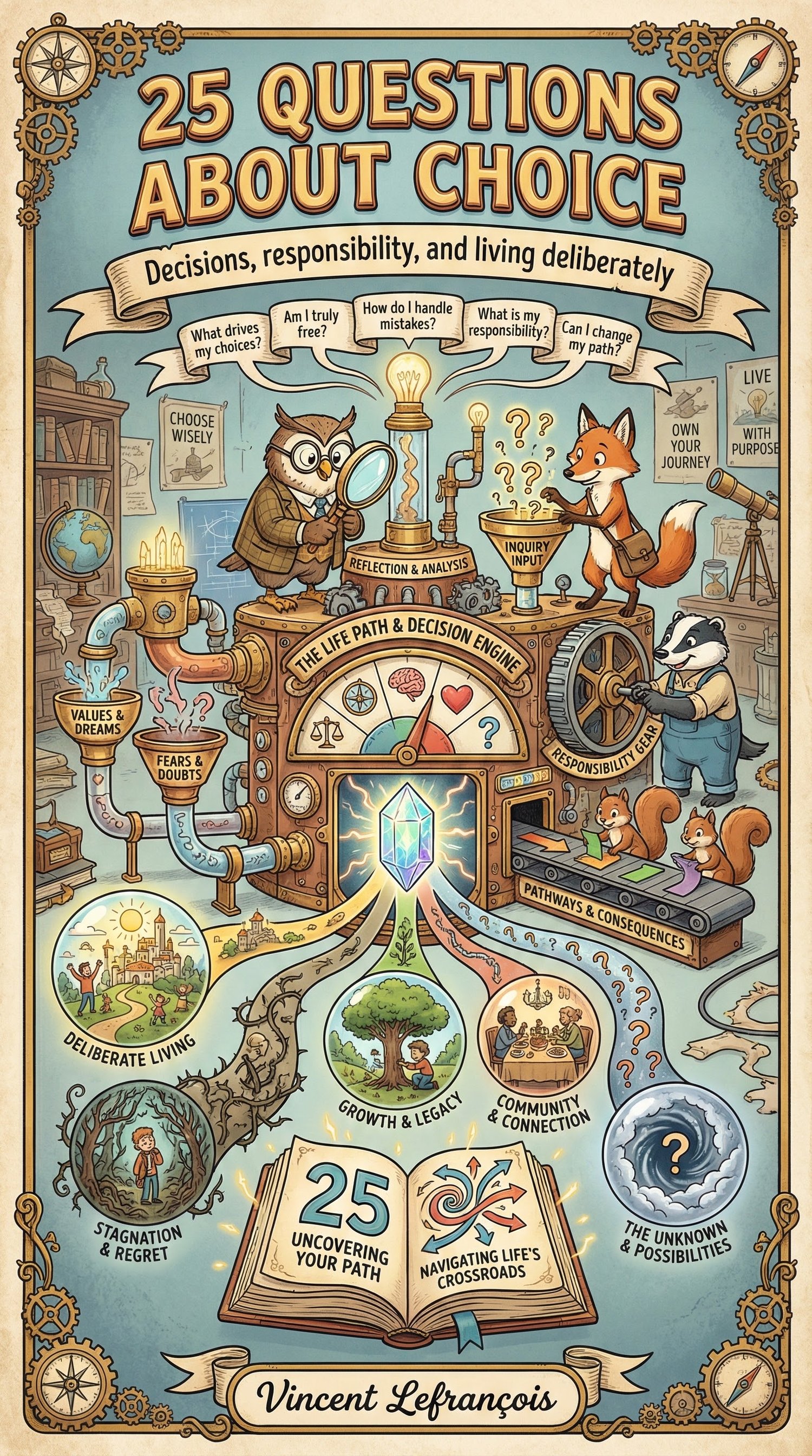 25 Questions About Choice is a beautifully illustrated educational book that explores how people choose, why decisions are difficult, and how freedom, responsibility, and uncertainty influence human behavior.