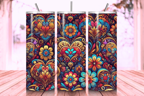 Colorful Happy Hearts Tumbler 20oz - Digital Download - Vibrant Heart Pattern - Love & Artistic Valentine's Gift - Cheerful Wrap PNG - 300 DPI